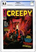 Stories in this last issue of Creepy magazine, which was published by Harris Publications, include: Sex Kitten by S.K. Pierce an Bill Wray; Creeps by Archie Goodwin, John Severin, and Wally Wood; Yellow Heat by Bruce Jones and Russ Heath; ...The Dump Man by Stephen Perry and Eric Shanower; Too Many Termarrows by Timothy Moriarty and Vic Catan; Dead Run by Jeff Jones; A Base and Nasel Hunger by Stephen Perry and Steve Bissette; Sacrifice by Roger McKenzie and Luis Bermejo; Grave Undertaking by Archie Goodwin and Alex Toth; To Kill a God! by Wally Wood; The Super-Abnormal Phenomena Survival Kit! by Jim Stenstrum and John Severin; Werewolf! by Larry Ivie and Frank Frazetta; Creepy's Loathsome Lore: Mummy's Curse! by Archie Goodwin and Roy G. Krenkel; The Machinations of Lust by S.K. Pierce, Mike Harris, and Greg Theakston; and No (Horse) Laughing Matter by Doug Moench and Rafael Auraleon. Cover art by Richard Corben. Cover price $2.95.