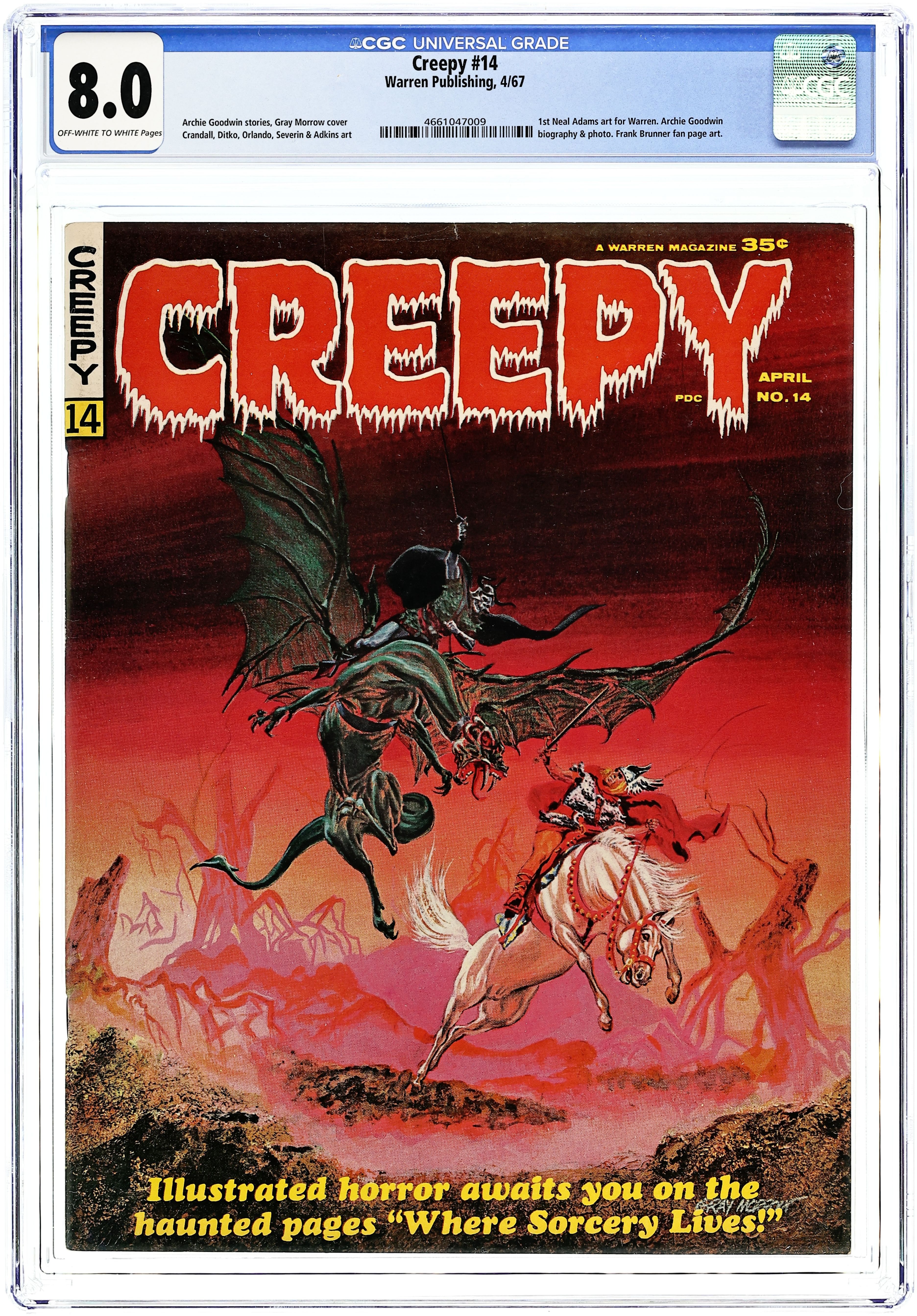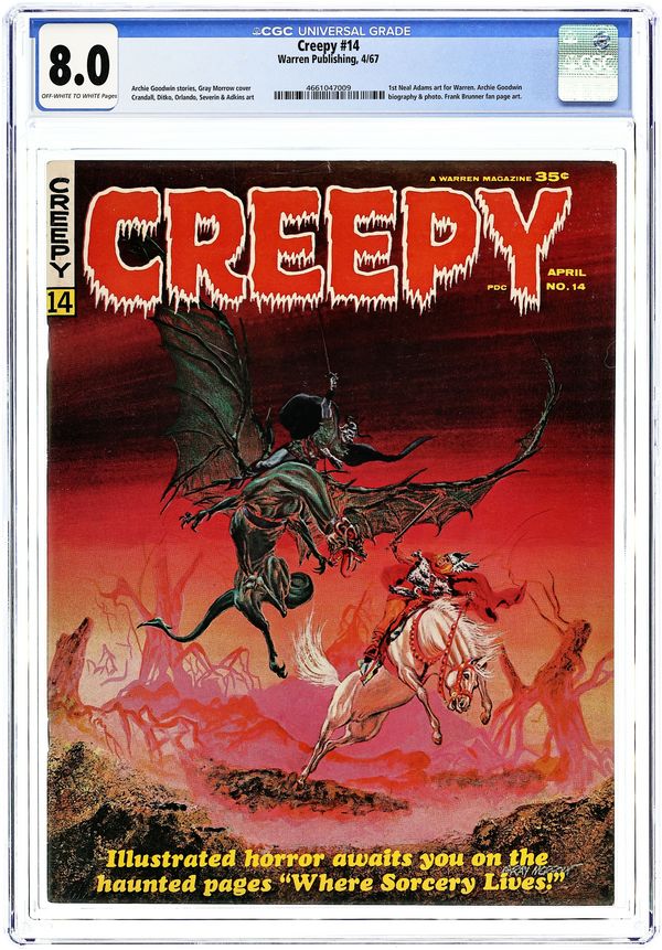 Stories in this issue include: Where Sorcery Lives! by Archie Goodwin and Steve Ditko; Art of Horror by Archie Goodwin and Jerry Grandenetti; Snakes Alive! by Clark Dimond, John Benson, and Hector Castellon; The Beckoning Beyond! by Archie Goodwin and Dan Adkins; Piece by Piece by Archie Goodwin and Joe Orlando; Castle Carrion! by Archie Goodwin and Reed Crandall; and Curse of the Vampire! by Archie Goodwin and Neal Adams (making his comic book debut). Cover art by Gray Morrow. Cover price $0.40.