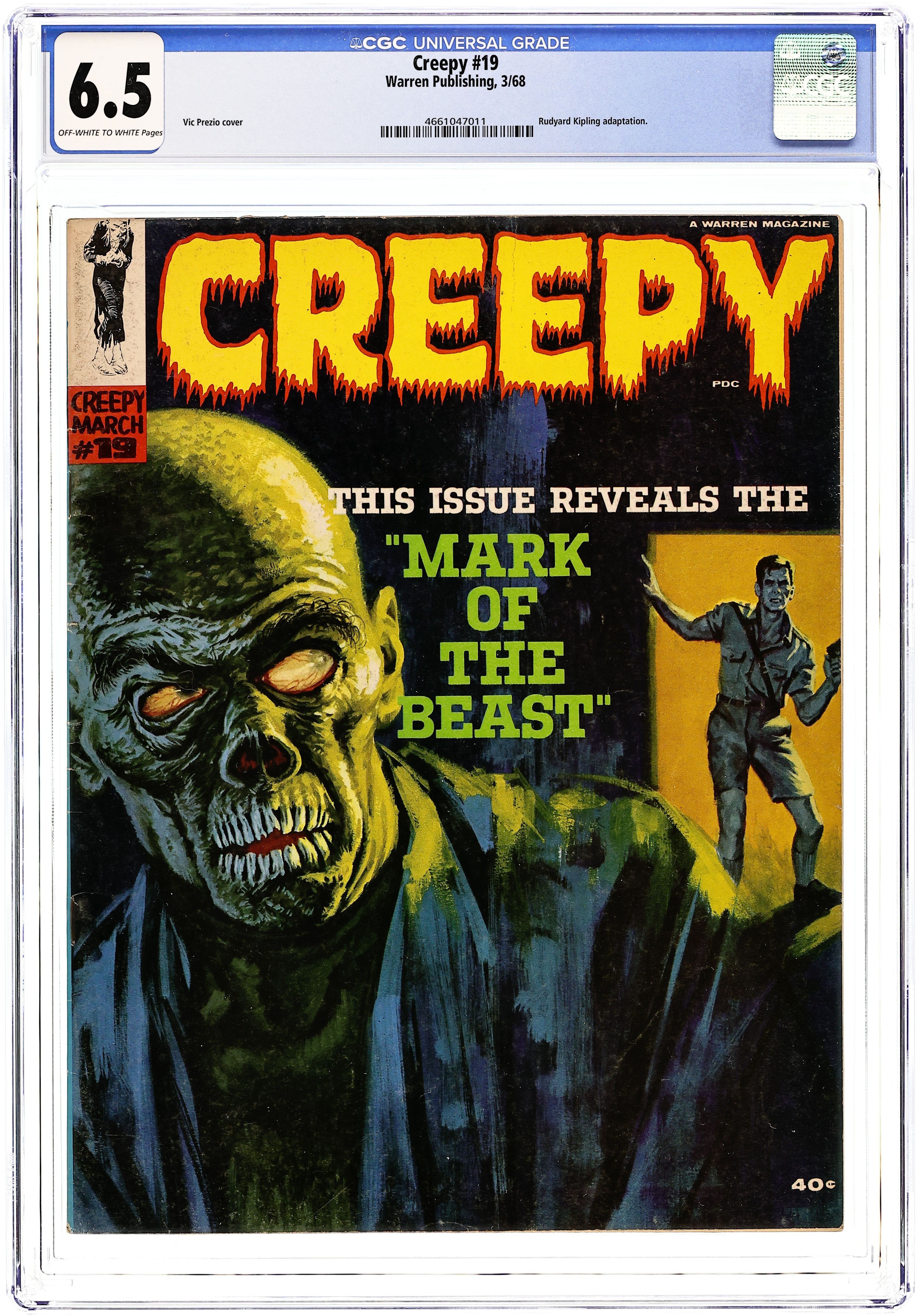 Stories in this issue include: The Mark of the Beast by Craig Tennis and Johnny Craig (from the story by Rudyard Kipling); Carmilla by John Benson and Bob Jenney (from the story by Sheridan Le Fanu); Monsterwork by Archie Goodwin and Rocco Mastroserio; and Eye of the Beholder by Archie Goodwin and Johnny Craig. Cover by Vic Prezo. Cover price $0.40.