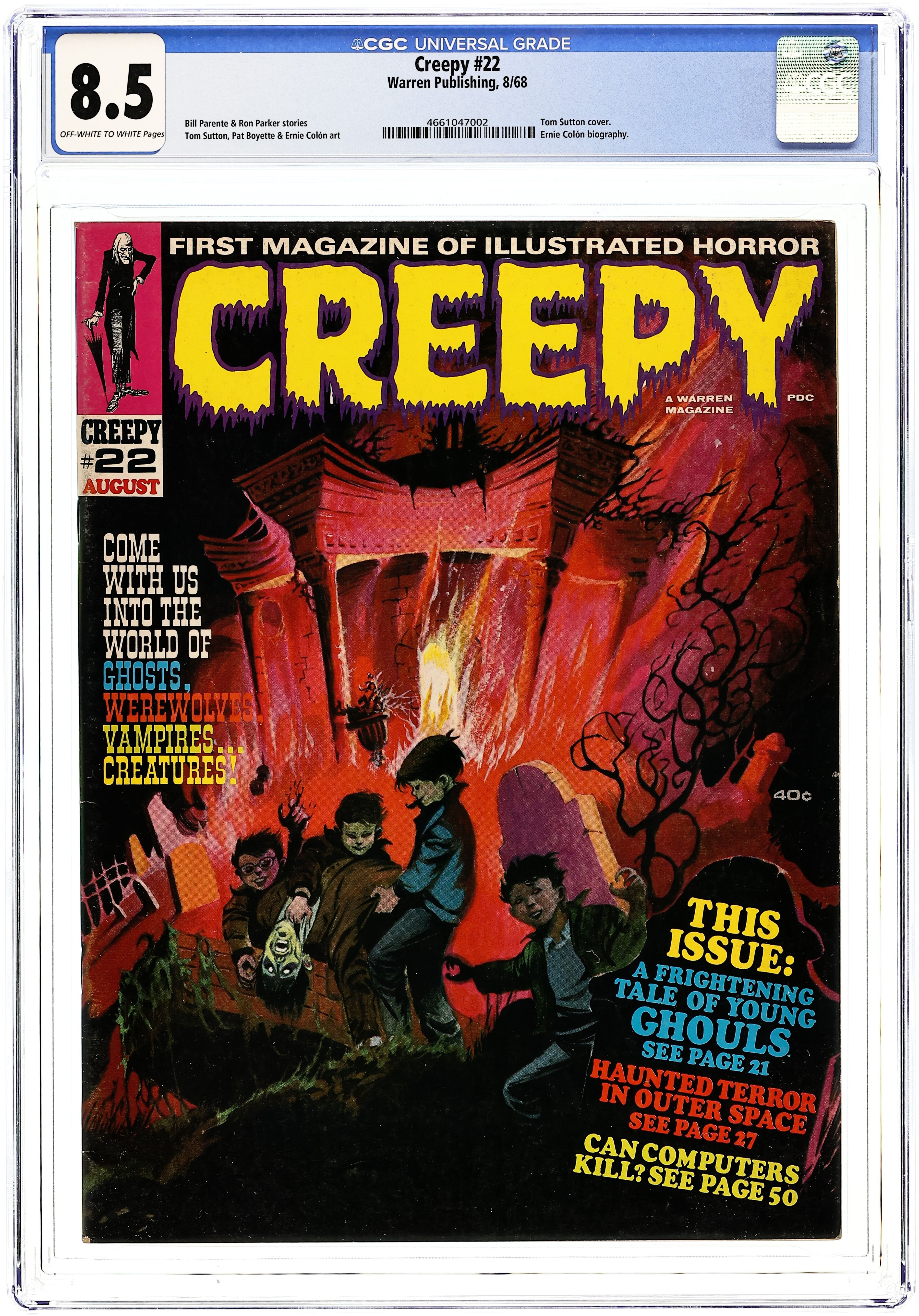 Stories in this issue include: Home is Where... by Ron Parker and Pat Boyette; Monster Rally by Archie Goodwin and Angelo Torres; No Fair by Bill Parente and Tom Sutton; Strange Expedition by Bill Parente and Ernie Colon; The Judge's House by Archie Goodwin and Reed Crandall (from the story by Bram Stoker); and Perfect Match by Ron Parker and Sal Trapani. Cover by Tom Sutton. Cover price $0.40.