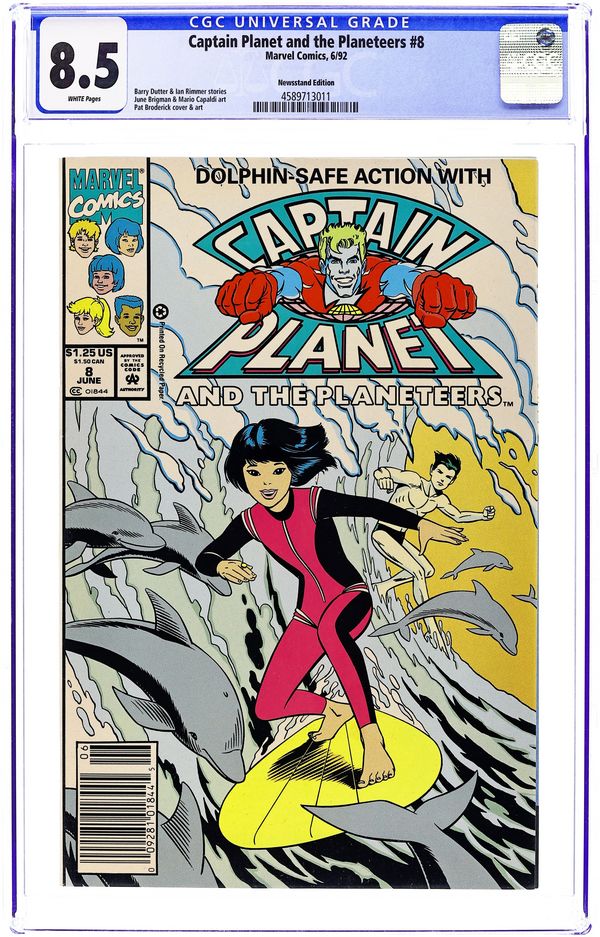 Newsstand Edition. Dolphin-safe action with Captain Planet and the Planeteers! Written by Ian Rimmer and Barry Dutter, with art by Mario Capaldi, Pat Broderick, June Brigman, Ralph Cabrera and Roy Richardson. Cover price $1.25.