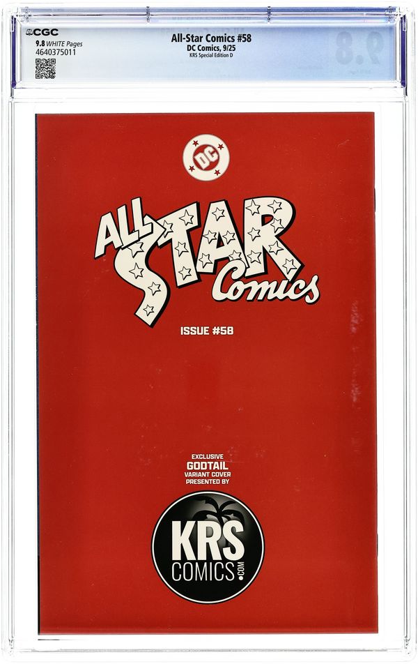 KRS Comics Exclusive Virgin Cover by Godtail - limited to 500 copies. Reprints All Star Comics (1940-1978) #58. Story by Gerry Conway. Art by Ric Estrada and Wally Wood. Originally distributed through blind bags.