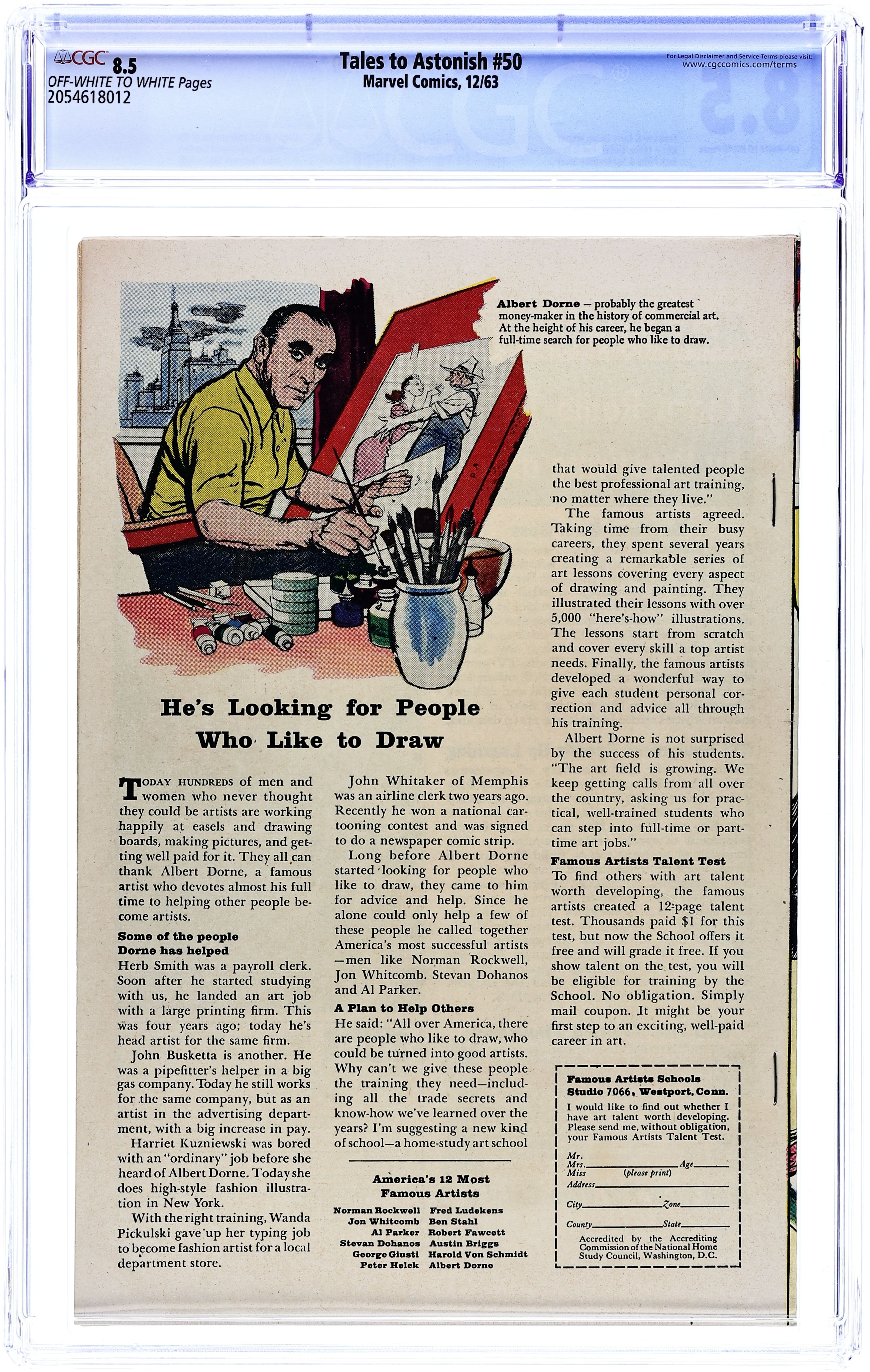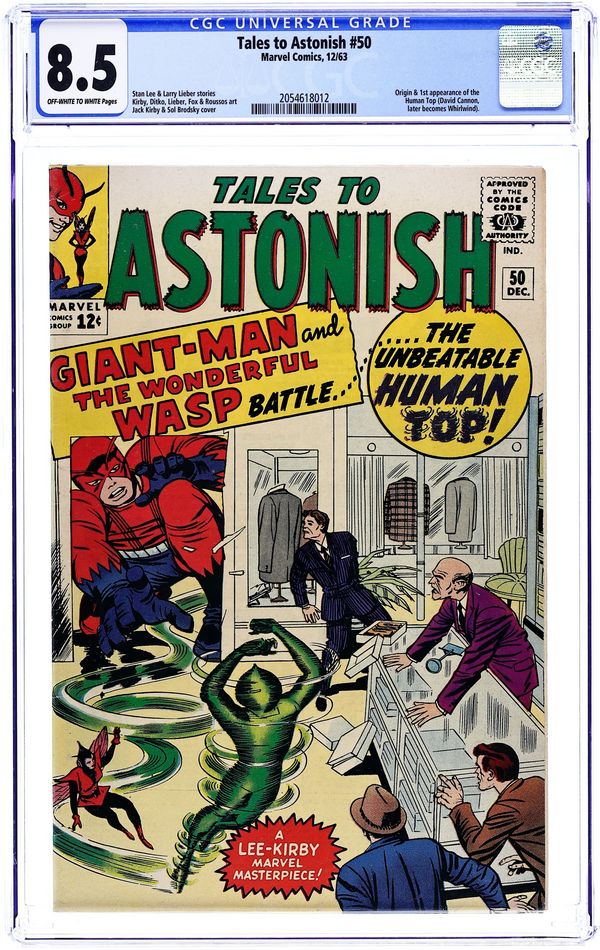 Cover by Jack Kirby and Sol Brodsky. The Human Top!, script by Stan Lee, art by Jack Kirbym, Steve Ditko, and Don Heck; Henry Pym follows the crime spree of the Human Top in the newspapers but the Wasp convinces Henry to go after him as Giant-Man. Mystery Trip text story, art by Joe Maneely; Tommy's uncle returns from a space journey needing to re-learn how to walk on earth instead of floating. The Secret of Sagattus!, script by Stan Lee and Larry Lieber, art by Larry Lieber and Matt Fox; A wise king listens only to the advice of a hunchback, causing the jealous nobles to murder the hunchback. No Ending!, script by Stan Lee and Larry Lieber, art by Larry Lieber; A dictator is tormented by dreams of running on a treadmill suspended high in the sky. 36 pgs., full color. $0.12. Cover price $0.12.