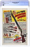 Ends May 4 7:57 PM CST Bid History no bids Minimum Bid $1 Your Secret Max Bid If you'd like to bid, please log in or register. Cover art by Sheldon Moldoff. "The Menace of the Multiple Creature" starring Batman and Robin, pencils by Sheldon Moldoff, inks by Charles Paris; When lightning hits a pool of chemical waste, a strange creature is created which constantly changes shape and size. Our American Heritage public service announcement, script by Jack Schiff, art by Bernard Baily. "The Girl With the Deadly Gaze" starring Roy Raymond TV Detective, art by Ruben Moreira; Roy investigates Janie Vance, who thinks she has the curse of Medusa. Jail Jests humor page by Henry Boltinoff. "Doom Rings the Doorbell" text story. "Case of the Honest Swindler" starring John Jones Manhunter from Mars, art by Joe Certa; Larry Loder is conned by Jed Peters into using three fake magical gadgets; The Martian Manhunter uses his powers to make the fake gadgets appear to really work. Statement of ownership; Average number of copies per issue, previous year: 314,000. 36 pgs., full color. Cover price $0.10.