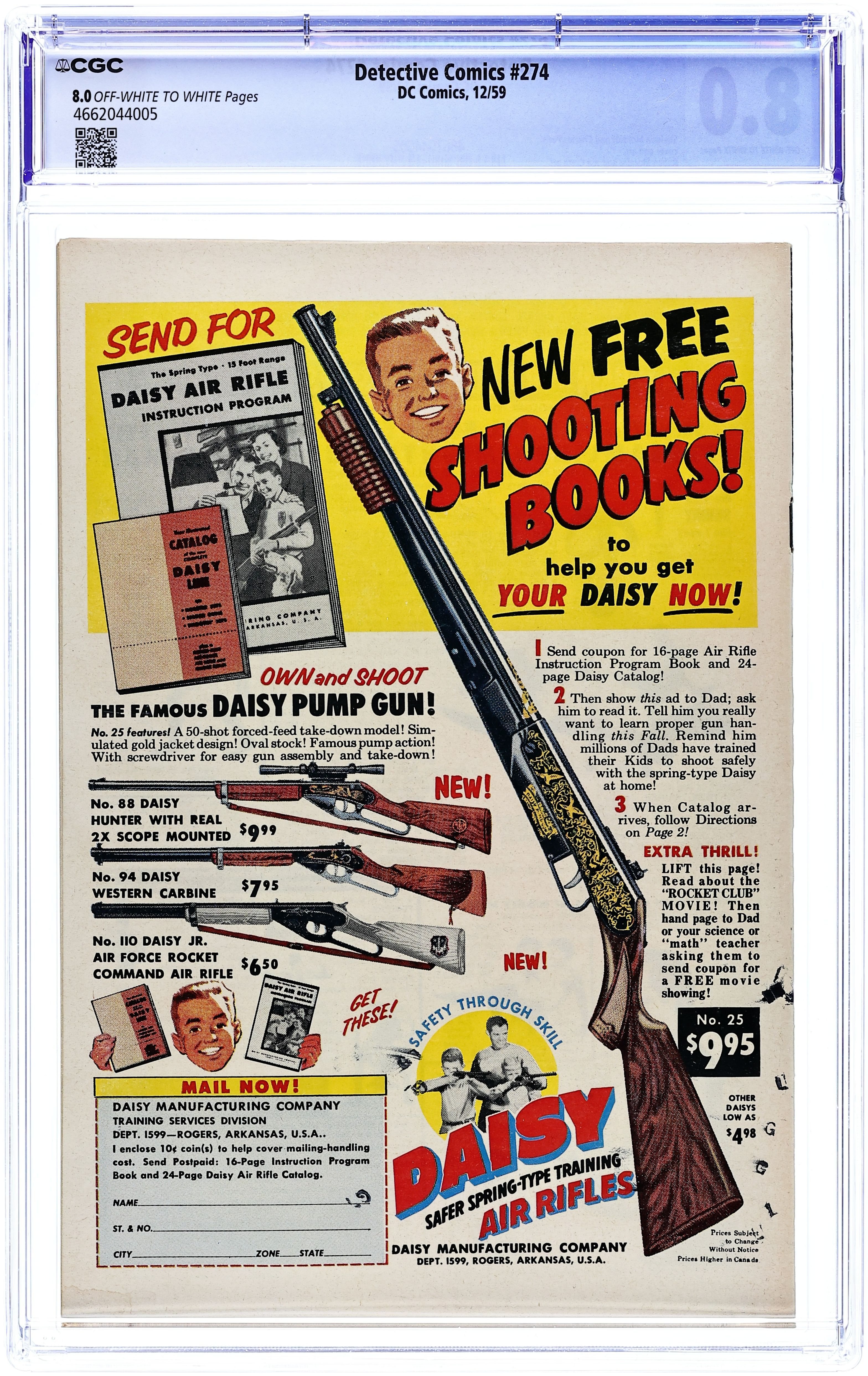 Cover art by Curt Swan and Stan Kaye. The Outlaw Who Played Batman starring Batman with Robin, pencils by Dick Sprang. The Man Who Could Eat Metal starring Roy Raymond TV Detective, art by Ruben Moreira. Casey the Cop humor page by Henry Boltinoff. The Dog with A Martian Master starring John Jones Manhunter from Mars, art by Joe Certa. 36 pgs. $0.10. Cover price $0.10.
