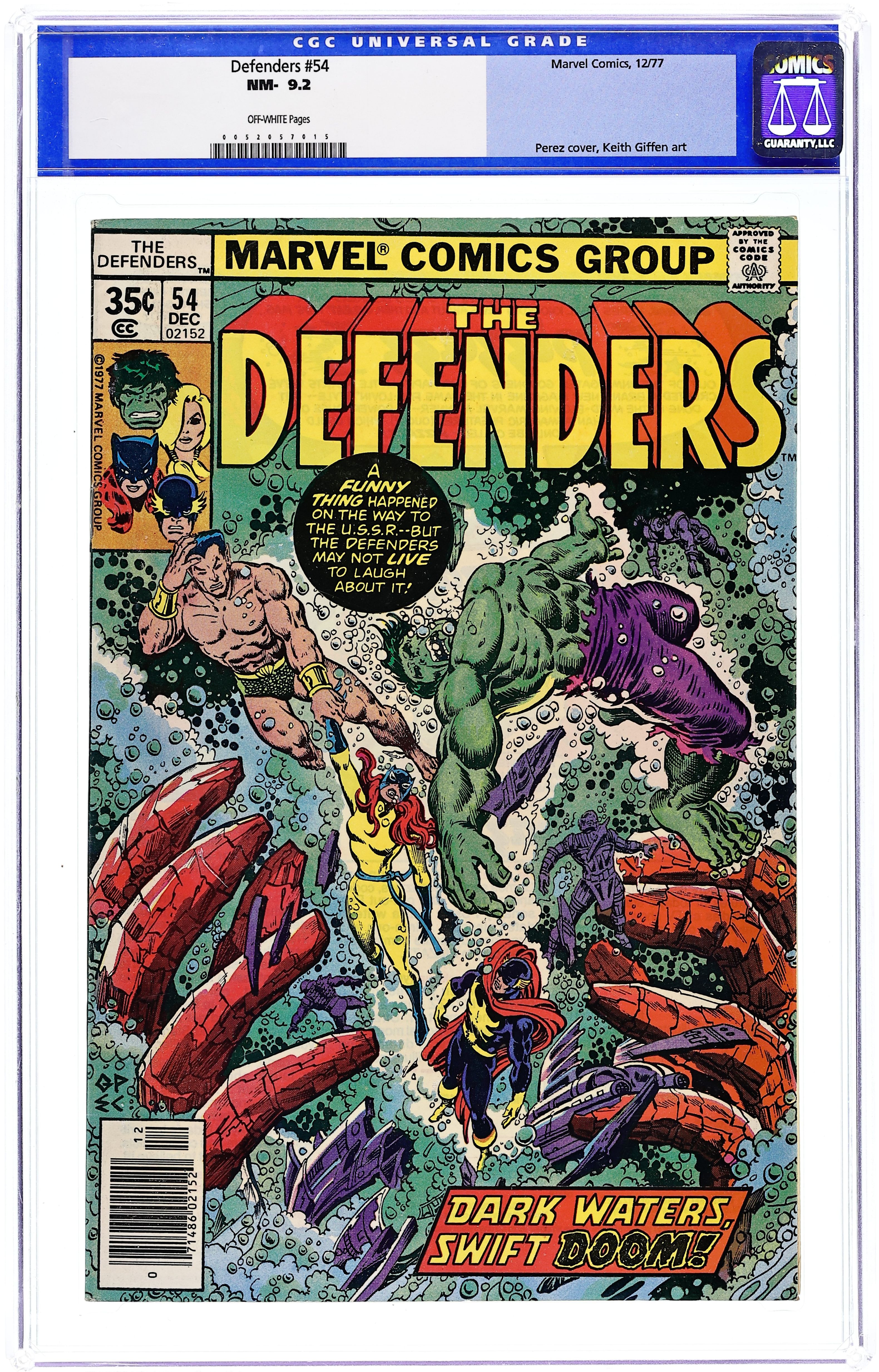 Cover pencils by Ed Hannigan, inks by Joe Sinnott. And Along Came... Ms. Marvel!, script by Chris Claremont (script) and Gerry Conway (plot), pencils by George Tuska (pages 1-6, 11-30) and Dave Cockrum (pages 7-10, 31), inks by Dan Green; A.I.M. captures the Hulk in an attempt to brainwash him and use him against Ms. Marvel; The Defenders, with Ms. Marvel, rescue the Hulk and stop A.I.M. One-page Hostess ad, Spider-Man Spoils a Snatch, pencils by Ross Andru. Letter to the editor from comics writer Kurt Busiek and comics historian Peter Sanderson. 36 pgs. $0.35. Cover price $0.35.
