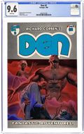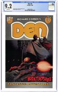 Created by Richard Corben, Den is probably best known for his appearances in Heavy Metal Magazine and in the 1981 Columbia Motion Picture, Heavy Metal, voiced by John Candy. In this series, with plot, illustrations, and color by Corben and script by Simon Revelstroke, Den and his allies must penetrate the stronghold of an enemy from the past before the guards and the rays of dawn discover them. This is a great jumping on point for any reader. Includes a back-up story by Stan Dresser. 32 pages. Mature themes. Cover price $2.00.