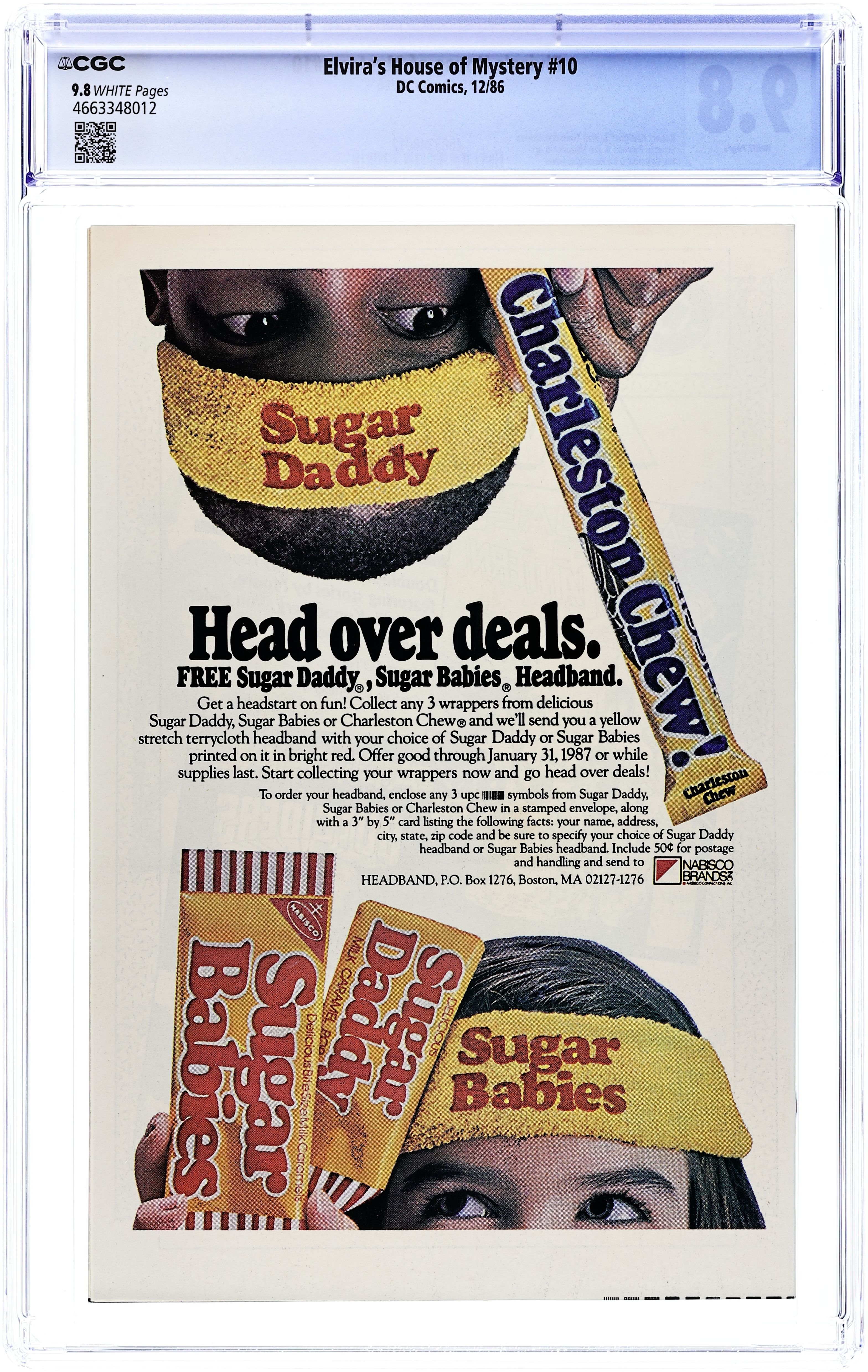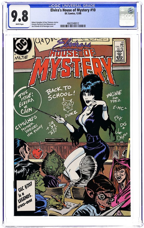 Direct Edition. 64-page Halloween Special. Cover art by Brian Bolland. Elvira inside front cover illustration by David Goldner. "Elvira's Quest," script by Joey Cavalieri, pencils by Ron Wagner, inks by Bob Oksner; The House of Mystery sends Elvira on a quest to find Cain. "The Realm," script by Philip Clarke, Jr., pencils by Tom Grindberg, inks by Irwin Hasen. "Death Likes a Lullaby," script by Robert Kanigher, art by Arthur Geroche. "Once Upon a Time," script by Dennis Yee, pencils by Dennis Yee, inks by Jim Fern, Dan Adkins, and Tex Blaisdell. "Vengeance in the Creature Feature!", script by Jack C. Harris, art by Dan Spiegle. "The Witch's Cauldron," script and art by Ma's Fay; A witch conjures up demons and a little boy conjures up Superman and Batman. Back cover and inside back cover photographs of Elvira. 68 pgs., full color. Cover price $1.50.
