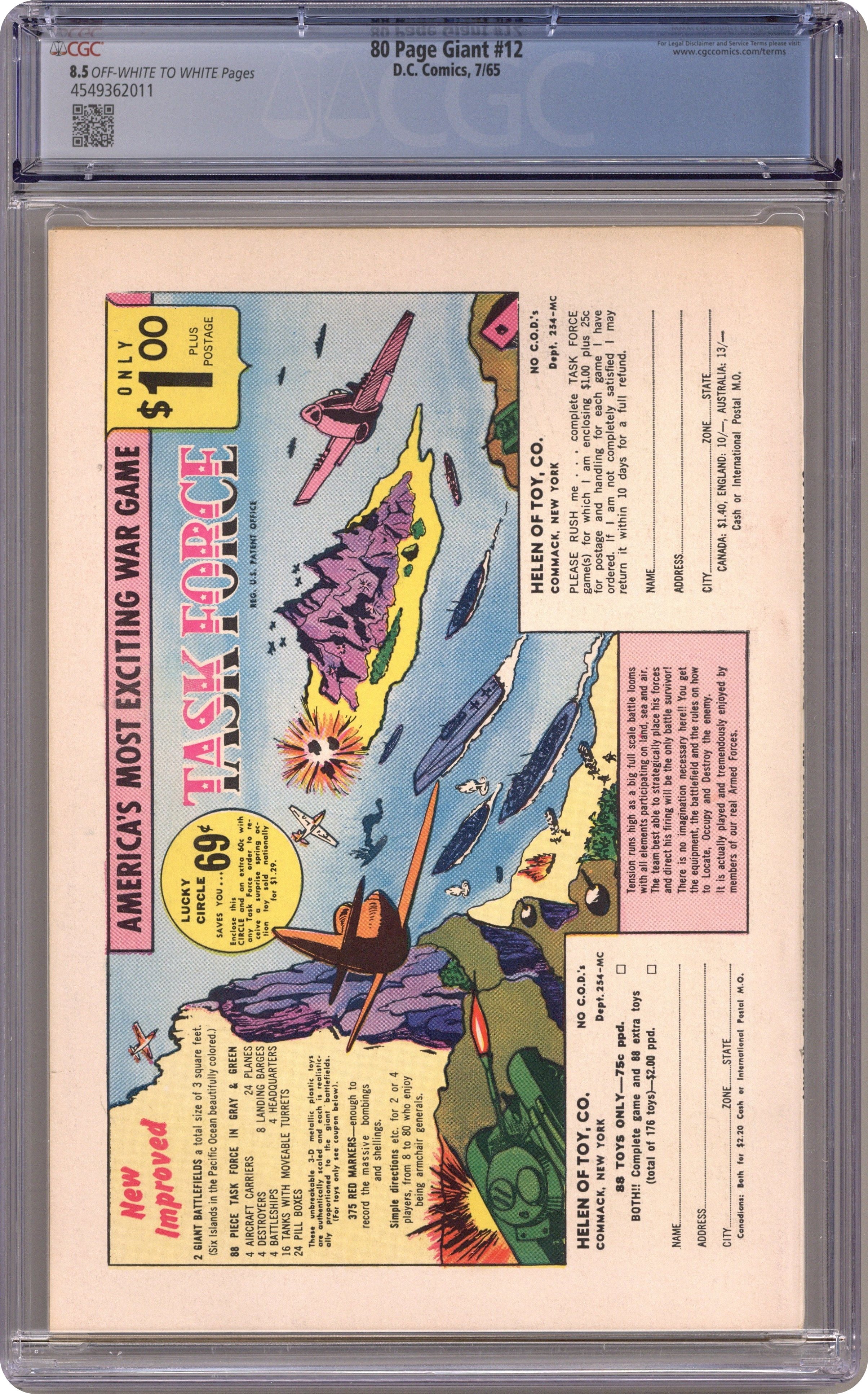 80 pg. Giant featuring the Greatest Scoops of Superman's Pal, Jimmy Olsen! All reprints. Cover pencils by Curt Swan, inks by George Klein. "The Invisible Life of Jimmy Olsen!", script by Otto Binder, pencils by Curt Swan, inks by John Forte; Superman accidentally turns Jimmy invisible, this results in super problems for the Cub Reporter. "Jimmy Olsen's Fantastic Powers" article. "Perry White, Cub Reporter!", script by Robert Bernstein, pencils by Curt Swan, inks by Stan Kaye; The tables are turned when Jimmy becomes editor of the Daily Planet and Perry is demoted to the role of Cub Reporter. "Jimmy Olsen, Speed Demon," script by Otto Binder, pencils by Curt Swan, inks by Ray Burnley; Jimmy accidentally drinks Professor Claude's super-speed serum and all is well until his new ability wears off suddenly. "The Radioactive Boy," script by Otto Binder, pencils by Curt Swan, inks by Ray Burnley; An atomic pile leak contaminates Jimmy and gives him a radioactive touch of death. Cheerios ad featuring Rocky and Bullwinkle. "Jimmy the Genie!", script by Robert Bernstein, pencils by Curt Swan, inks by John Forte; Jimmy releases a genie named Abdul and accidentally switches places with him, becoming a genie under Abdul's power. "Superman's Enemy!", script by Otto Binder, pencils by Curt Swan, inks by Stan Kaye; A strange space jewel reverses Jimmy's emotions causing him to hate his best pal Superman. G. I. Joe toy ad. "Jimmy Olsen's Kookie Scoops!", script by Jerry Siegel, art by John Forte; When Jimmy gets a job on the Bizarro World's newspaper the "Daily Htrae," he struggles to get to grips with the Bizarro idea of a scoop. "Superman's Super-Rival!", script by Bill Finger, pencils by Curt Swan, inks by John Forte; Why does Jimmy replace Superman with a new super pal—a stranger clad in lead bandages called Mysterio? "Jimmy Olsen's Signal-Watch" article. 84 pgs., full color. Cover price $0.25.