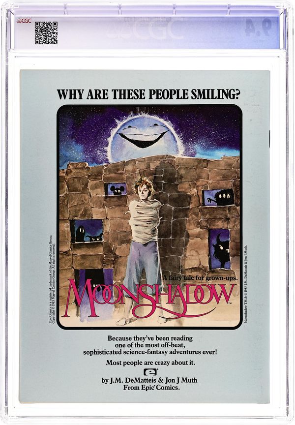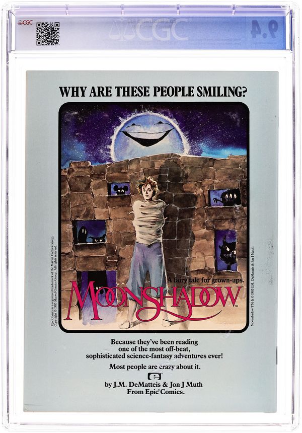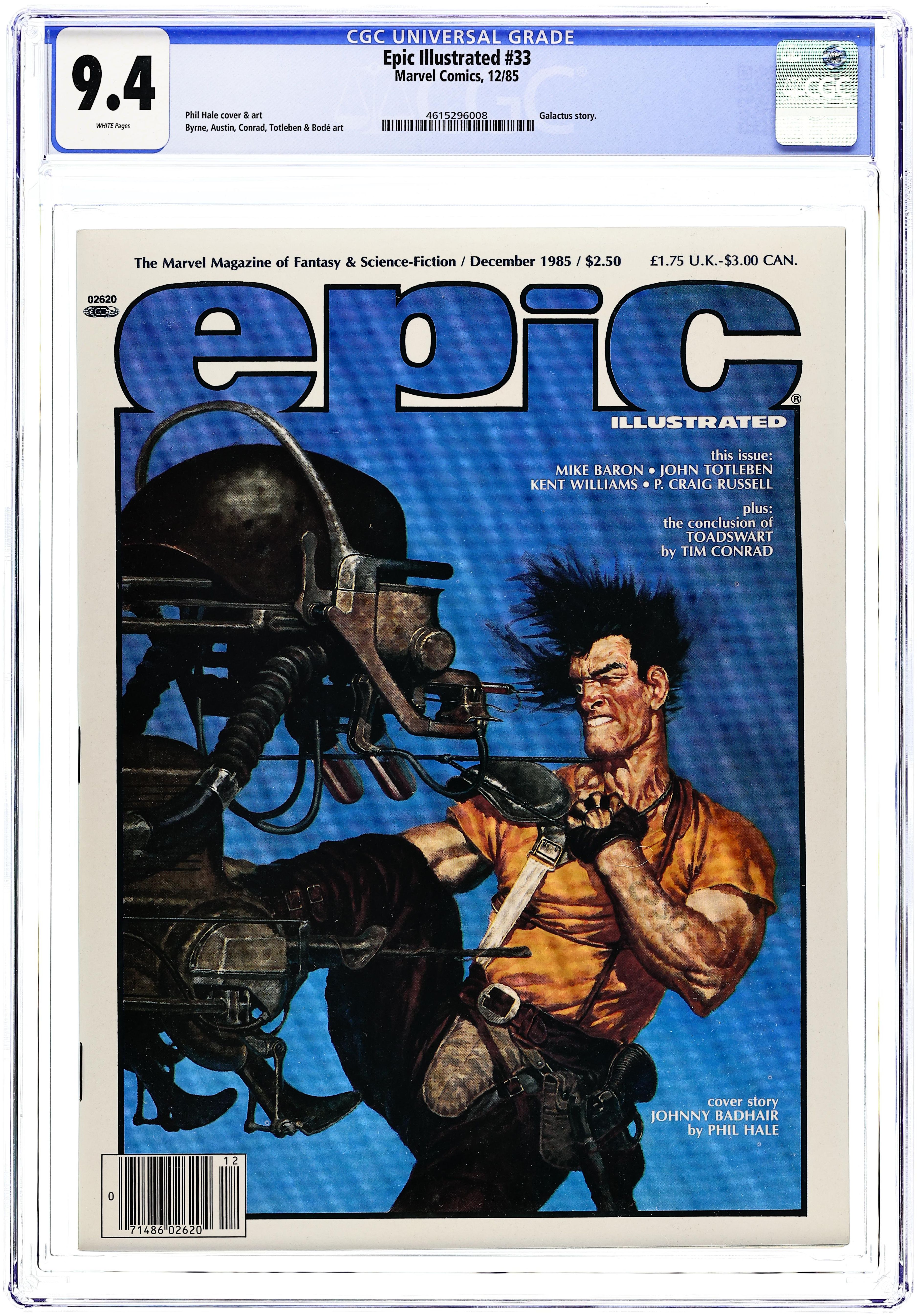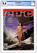 Cover art by Jeffrey Jones. Vessels of the Past (Chapter VI)--The Sacred & The Profane, script by Dean Motter, art by Ken Steacy. Space Cruiser Yamato article by Jo Duffy. The Potty's Over, script and art by Bernie Wrightson. Mediaview article by Dennis O'Neil. Landmass, script and art by Rick Veitch. Apocrypha, script and art by John Lakey and Laura Lakey. Epic Images illustrated text piece with art by John Bolton, Alan Weiss, Jim Sherman, Jackson Guice, Ron Harris, Tom Yeates, Val Mayerik, Paul Gulacy, Jon Jay Muth, Michael Kaluta, Mike Vosburg. Did You Hear the One About the Traveling Ogre and the Mayor's Daughter?, script by Jo Duffy, art by John Bolton. Toadswart story, script and art by Tim Conrad. 100 pgs. Aug, 1984. $2.50. Cover price $2.50.