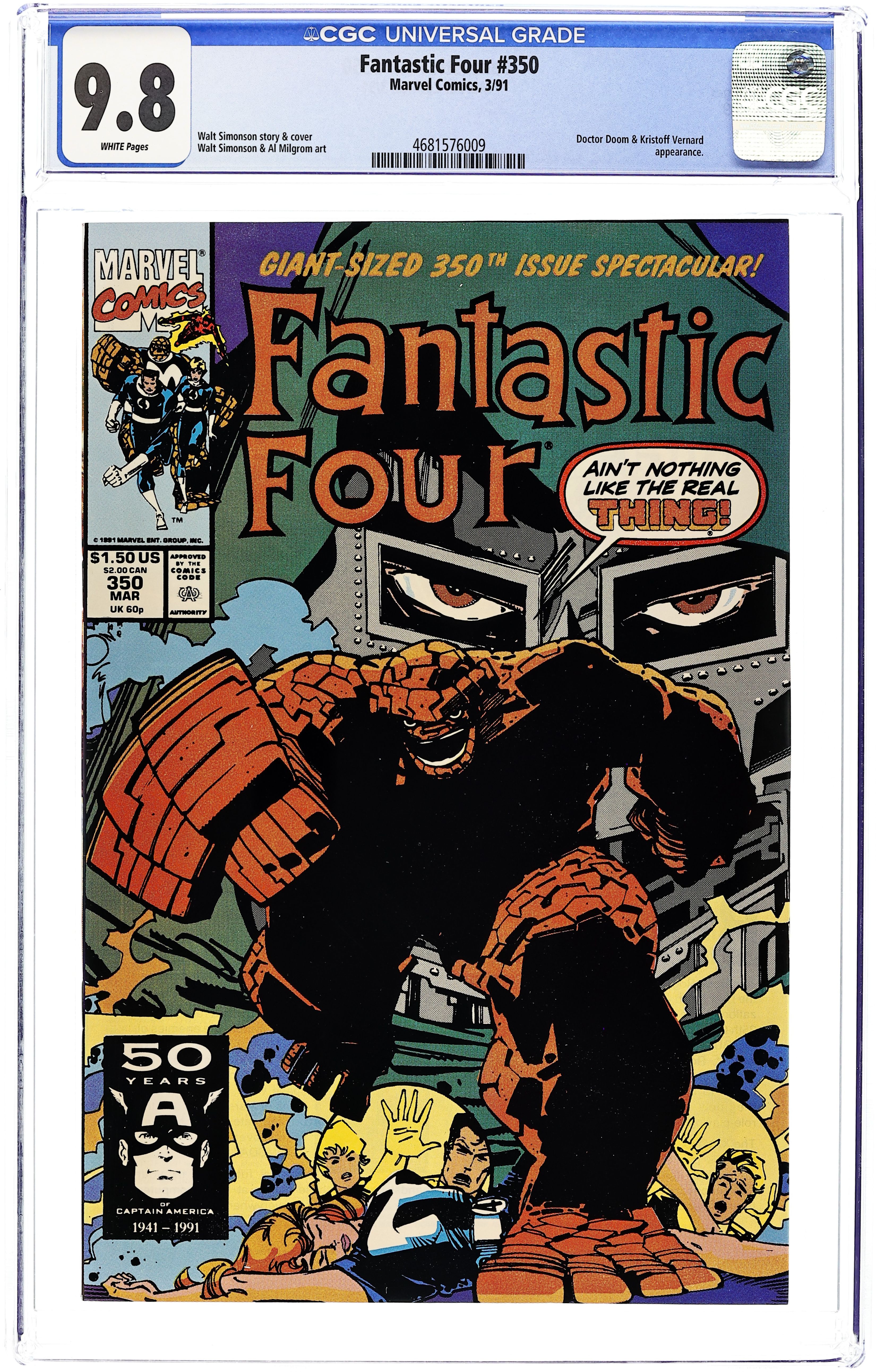 "The More Things Change...or It's the Real Thing!" Part 1 of 4. Story and cover by Walt Simonson. Art by Walt Simonson and Al Milgrom. First, the one true Doctor Doom has returned and his first order of business is to get his throne back. Doom wages a full-scale assault on Latveria! Then, the arch villain turns his sinister attentions toward his most hated foes - the Fantastic Four. Story continues in Fantastic Four (1965-1996 1st Series ) #352. Note: Due to a scheduling mishap this story continues in #352. - Odinson, Lone Star Comics Archivist. 52 pgs. Cover price $1.50.