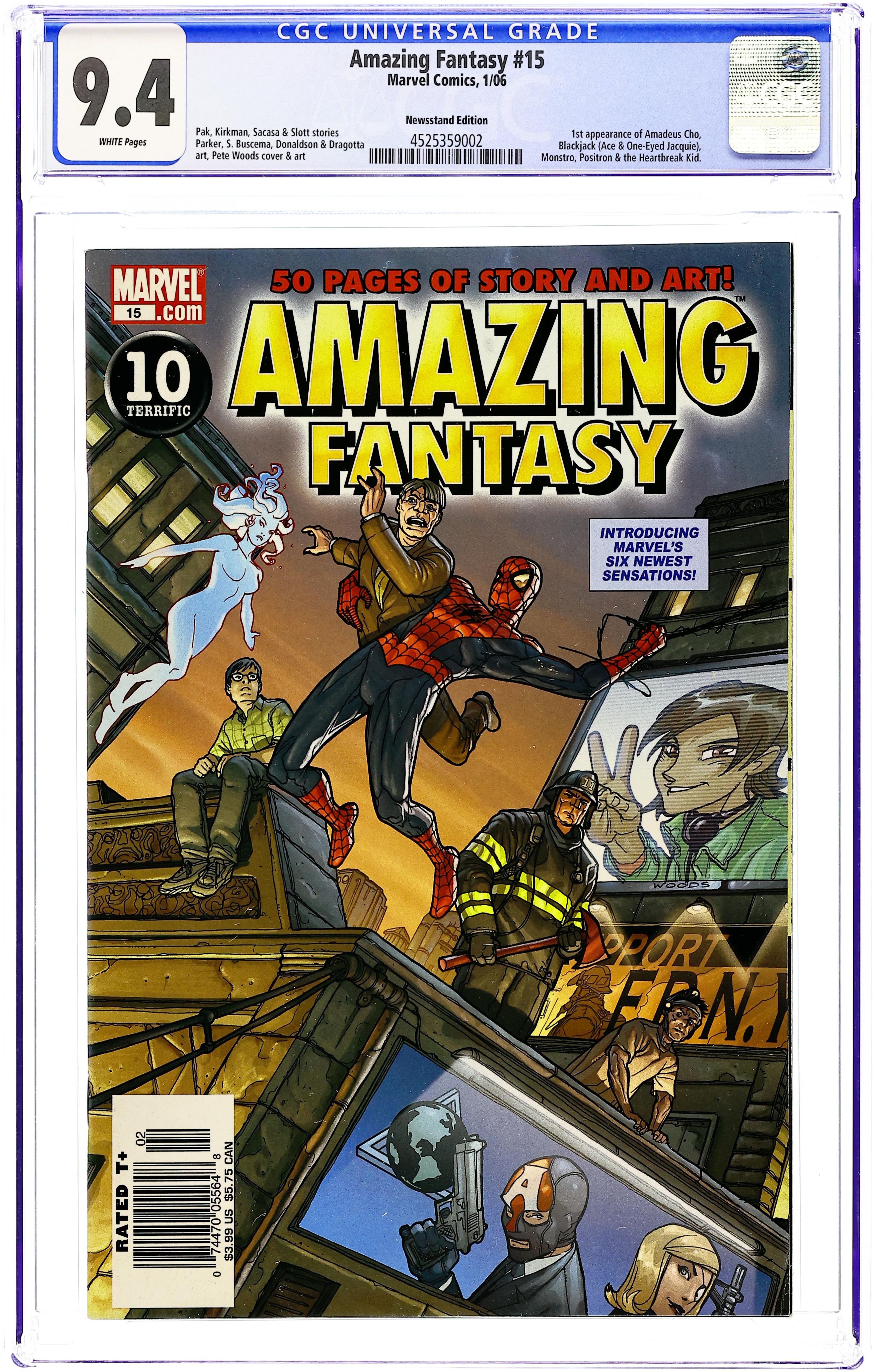 Starts Dec 15 Direct Edition. Planet Hulk/World War Hulk tie-in (1st appearance of Amadeus Cho) - Written by DANIEL WAY, DAN SLOTT, GREG PAK, ROBERT KIRKMAN, & ROBERTO AGUIRRE-SACASA Penciled by PETE WOODS, NICK DRAGOTTA, JEFF PARKER, SAL BUSCEMA, KHARI RANDOLPH & TAKESHI MIYAZAWA Cover by PETE WOODS MILESTONE ISSUE: In the tradition of the original Marvel classic that debuted everyone's favorite wall crawler, we introduce a new generation of heroes in this 48-page special featuring five new stories by our hottest new writers. Will lightning strike twice? Is Marvel's next superstar in these very pages? A guaranteed blast of comic book fun! Cover price $3.99.