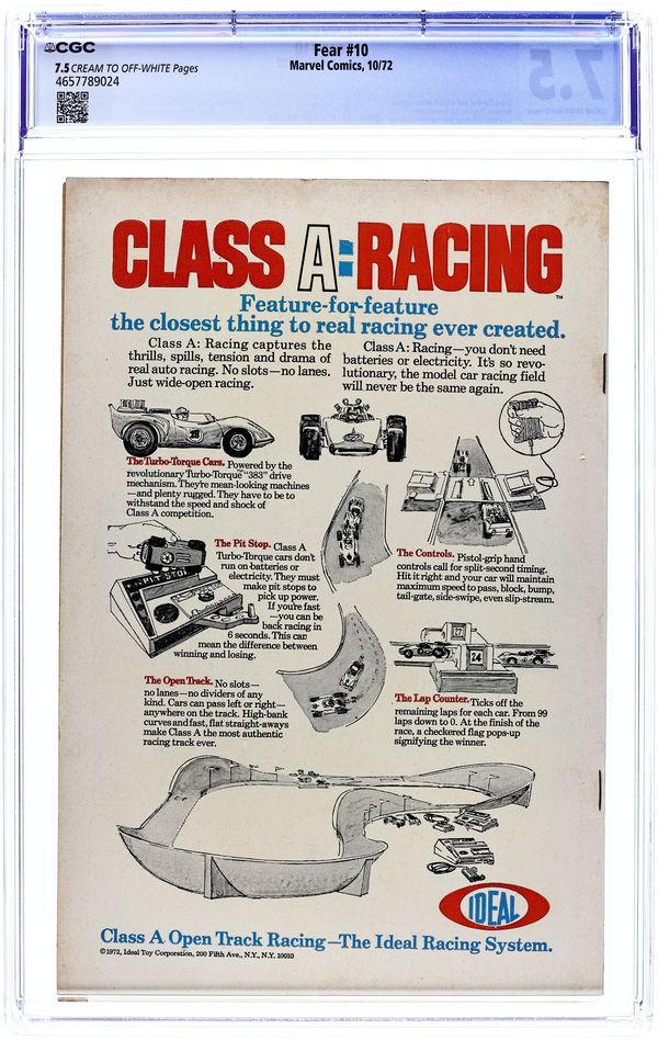 Giant-size issue. All reprints: Cover art by Jack Kirby. All reprints: "What Was X the Thing That Lived!", pencils by Jack Kirby, inks by Dick Ayers; A writer buys an enchanted typewriter that brings his monster stories to life. "Orrgo...the Unconquerable!", pencils by Jack Kirby, inks by Dick Ayers; An alien race with immense telepathic and telekinetic powers send one of their kind to conquer Earth; He easily defeats the police and army and freezes Washington, DC in a block of ice. "One-Way Journey!", art by Steve Ditko; A heartless tycoon has a time machine built to take him forty years into the future, where he believes that war and disease will be wiped out. "I Dared Enter the Forbidden World!", art by Don Heck; A white game hunter finds the legendary elephant's graveyard, hoping to make a fortune in ivory; He discovers that elephants were introduced to Earth by Martians. "The Inhuman!", art by Don Heck; In a future war between humans and robots the robots try to find a way to break the human defenses by sending a robot spy disguised as a human. "I Learned the Dread Secret of the Blip!", pencils by Jack Kirby, inks by Dick Ayers; A power drain and radar anomaly is traced to a creature made of electricity hiding in a cave. "I Defied the Curse of Tut-Ah-Anka!", art by Paul Reinman; A criminal hides from the police in an old Egyptian tomb, ignoring the warning of a curse; He not only escapes the police, but has a run of luck that makes him rich and happy. 68 pgs., full color. Cover price $0.25.