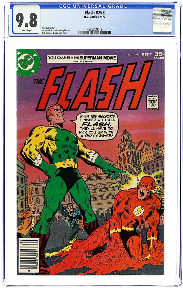 Cover pencils by Rich Buckler, inks by Jack Abel. Don't Mess With the Melter, script by Cary Bates, pencils by Irv Novick, inks by Frank McLaughlin; The Molder, who is the villain persona of the Elongated Man, turns Flash into putty; Iris Allen must restore him to normal. Hostess baseball cards ad. The Great Superman Movie Contest ad. Mister Miracle ad, art by Marshall Rogers. Superman kite ad. Full-page Swamp Thing article by Jenette Kahn. Sea World back cover ad with Batman, Robin, Superman and Wonder Woman. 36 Pages, Full Color. Cover price $0.35.