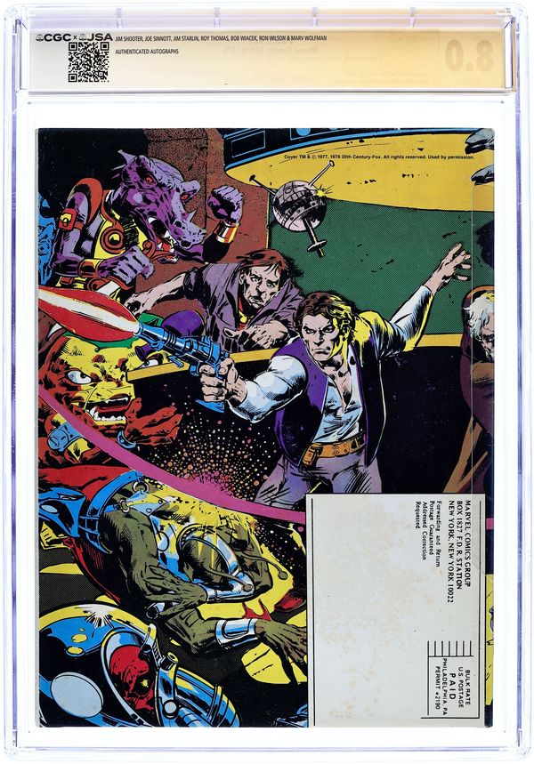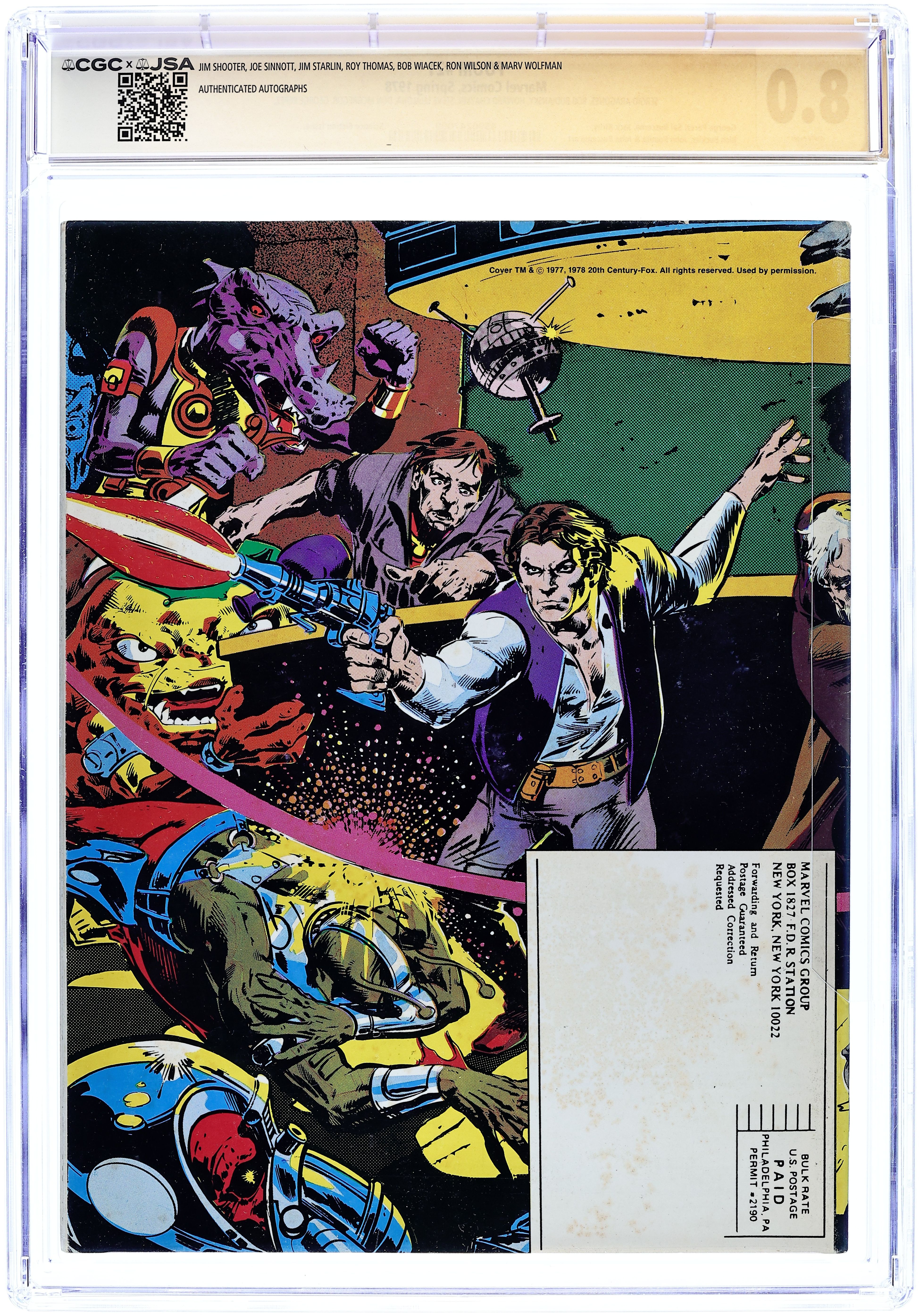 This issue has an article which features the All-New, All-Different X-Men that predates their first official appearance in Giant-Size X-Men #1. Illustrations by Jack Kirby (original design for the Sentinels), Dave Cockrum (Storm sketch), Don Maitz (centerspread pin-up of the original and new X-Men), Val Mayerik, and Bob Budainsky. Good quality photos of Stan Lee, Neal Adams, Herb Trimpe, Doug Moench, Marie Severin, Howard Chaykin, Roy Thomas, Marv Wolfman, Joe Sinnott, Len Wein, and Scott Edelman. Cockrum cover.