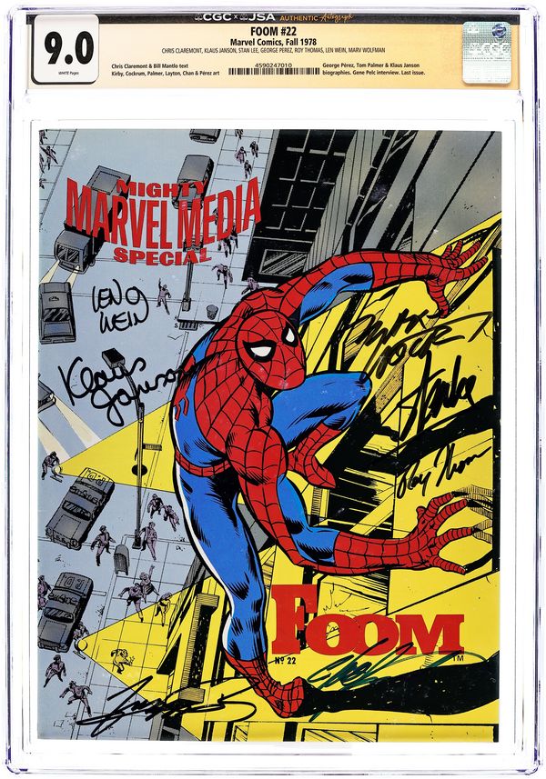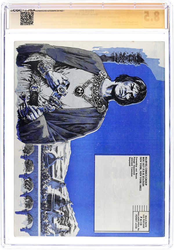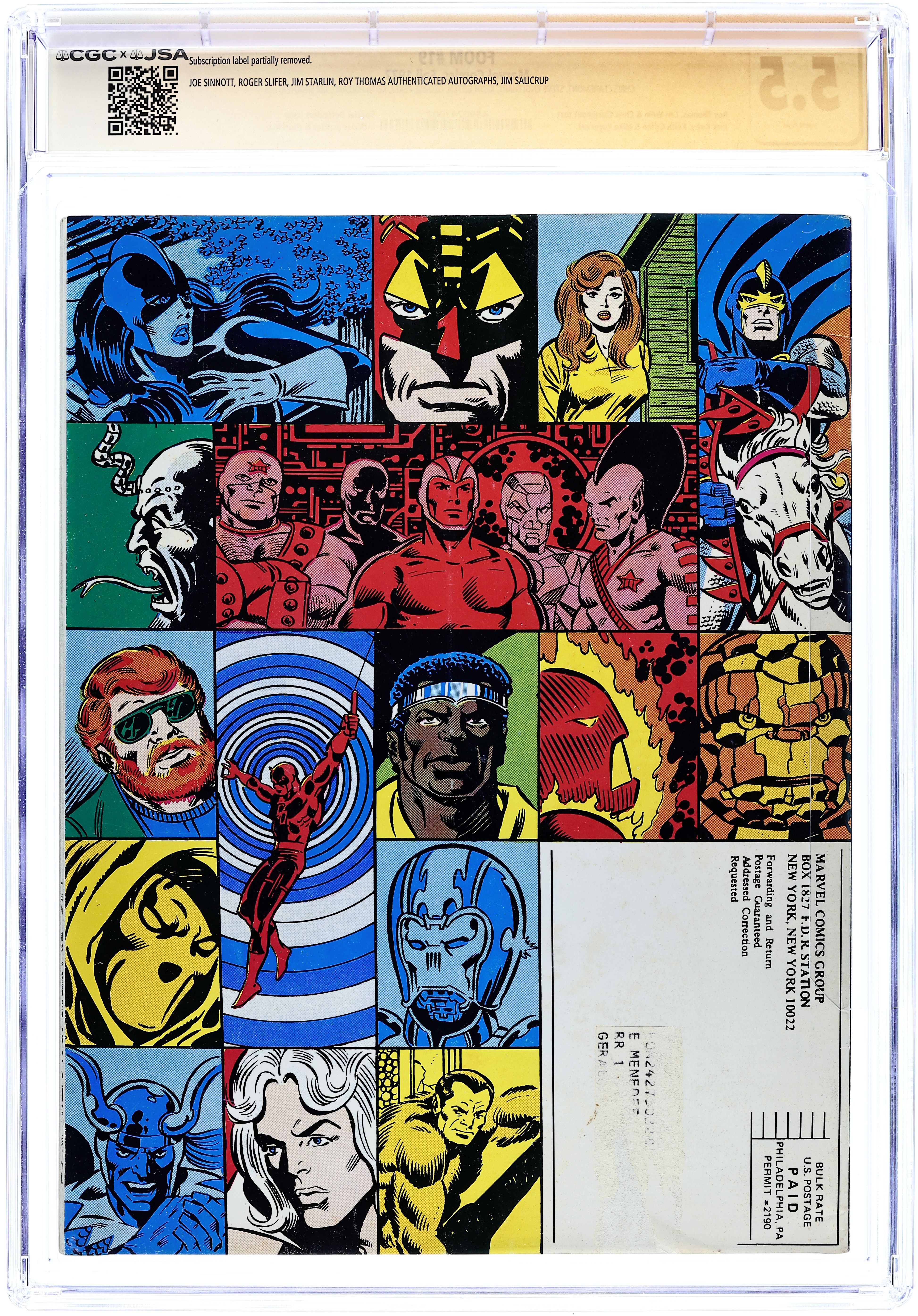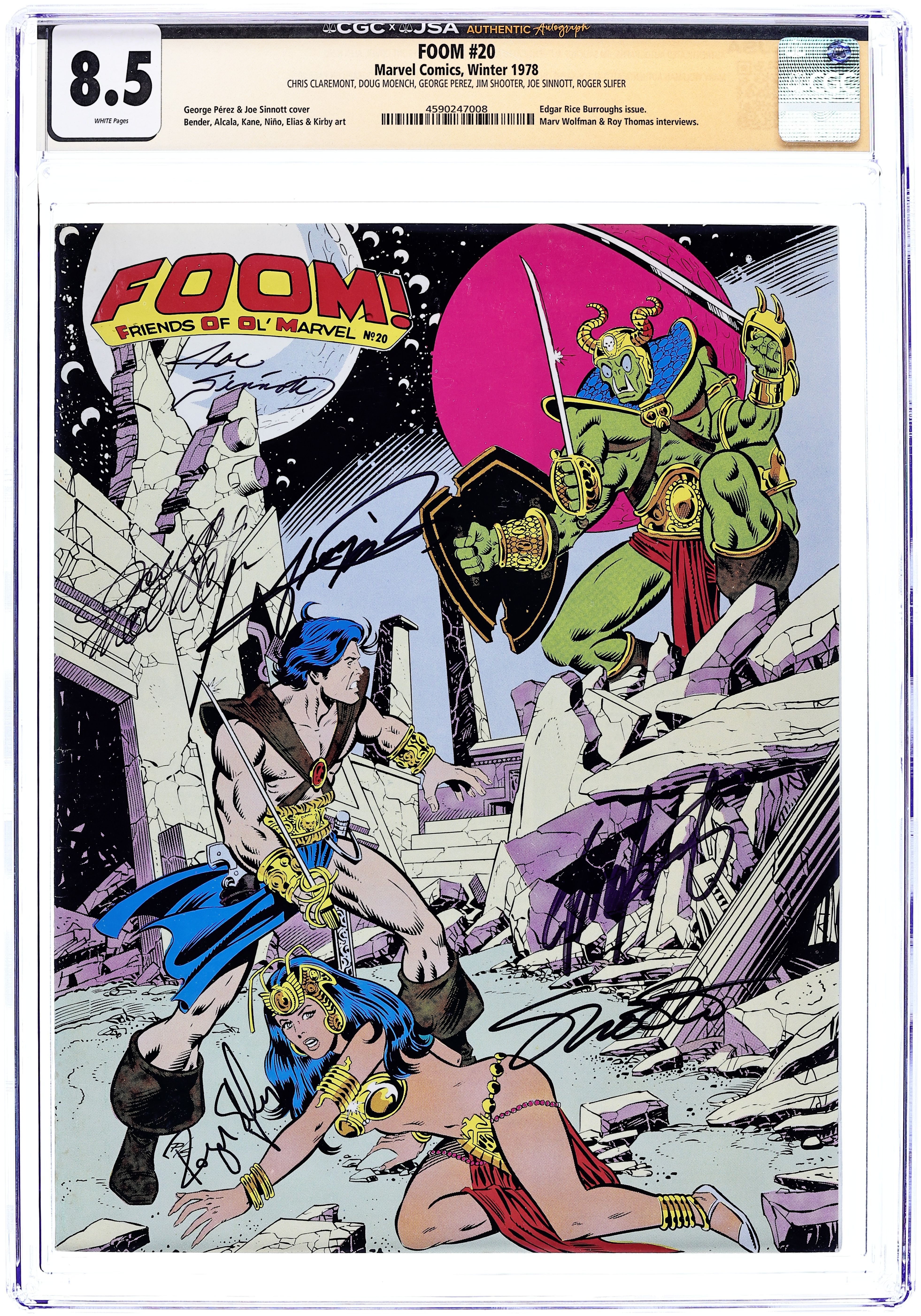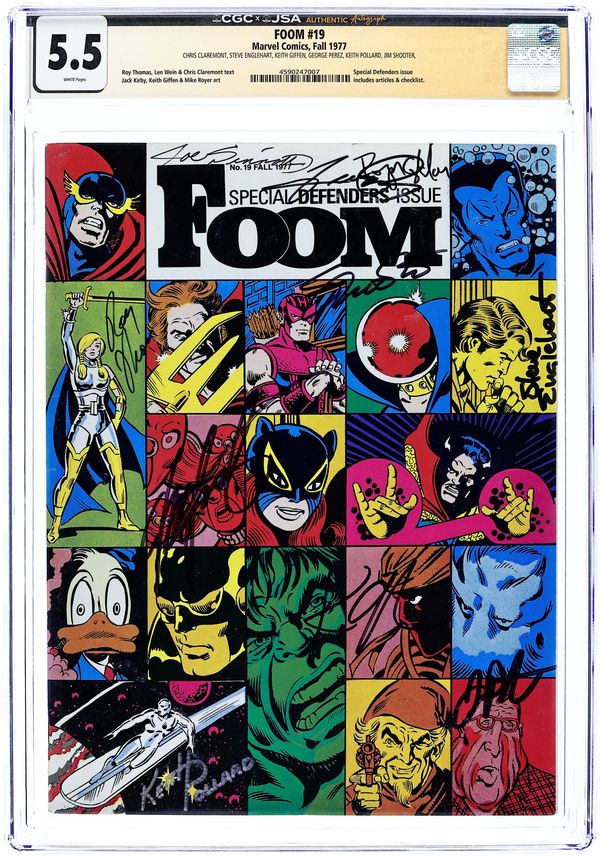 Fantastic Four issue, including an article and checklist (issues 1-132). Editor Jim Steranko produced several new illustrations for this issue. Bios (with photos) of Stan Lee, John Buscema, Roy Thomas, Joe Sinnott, and Gerry Conway.