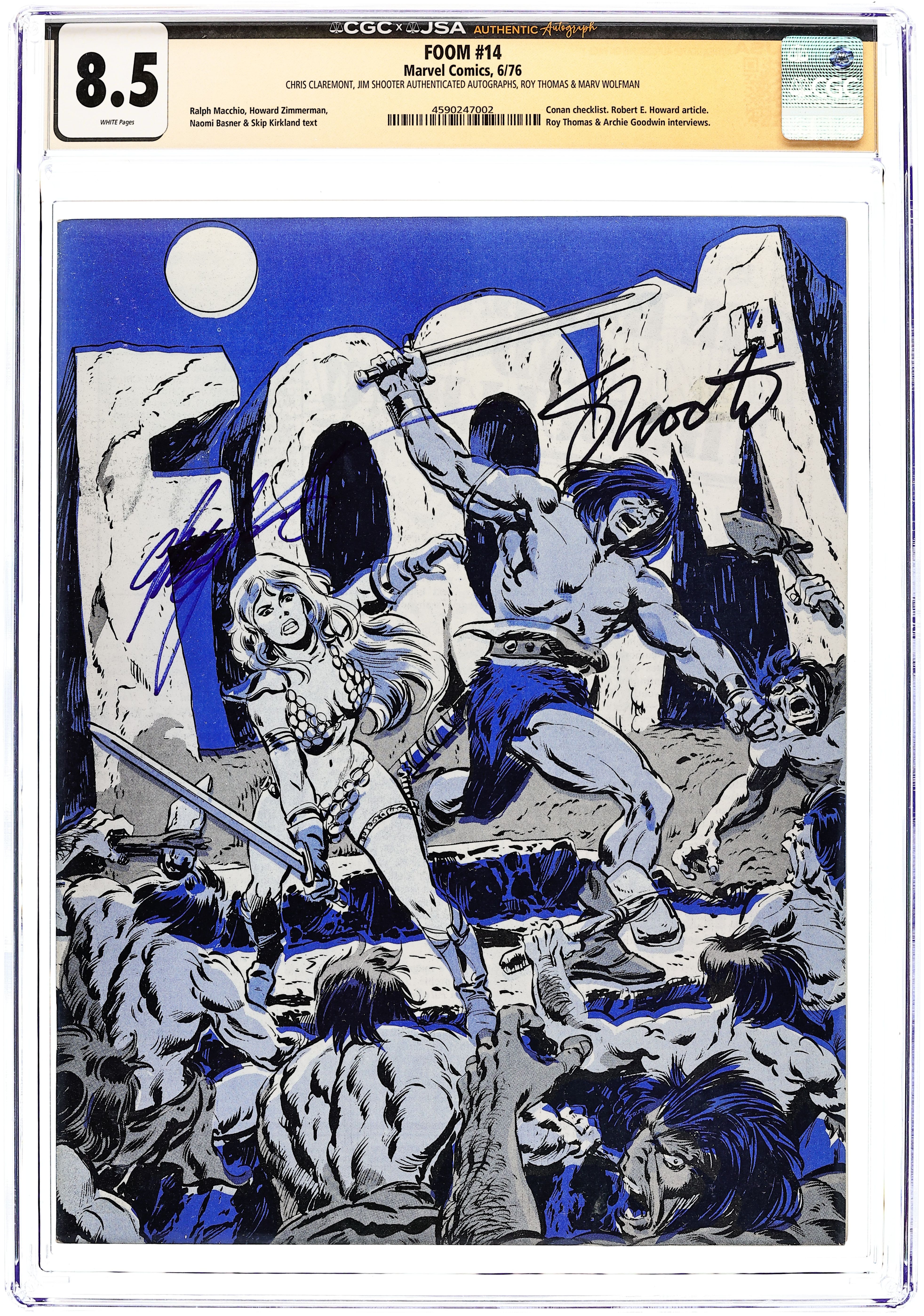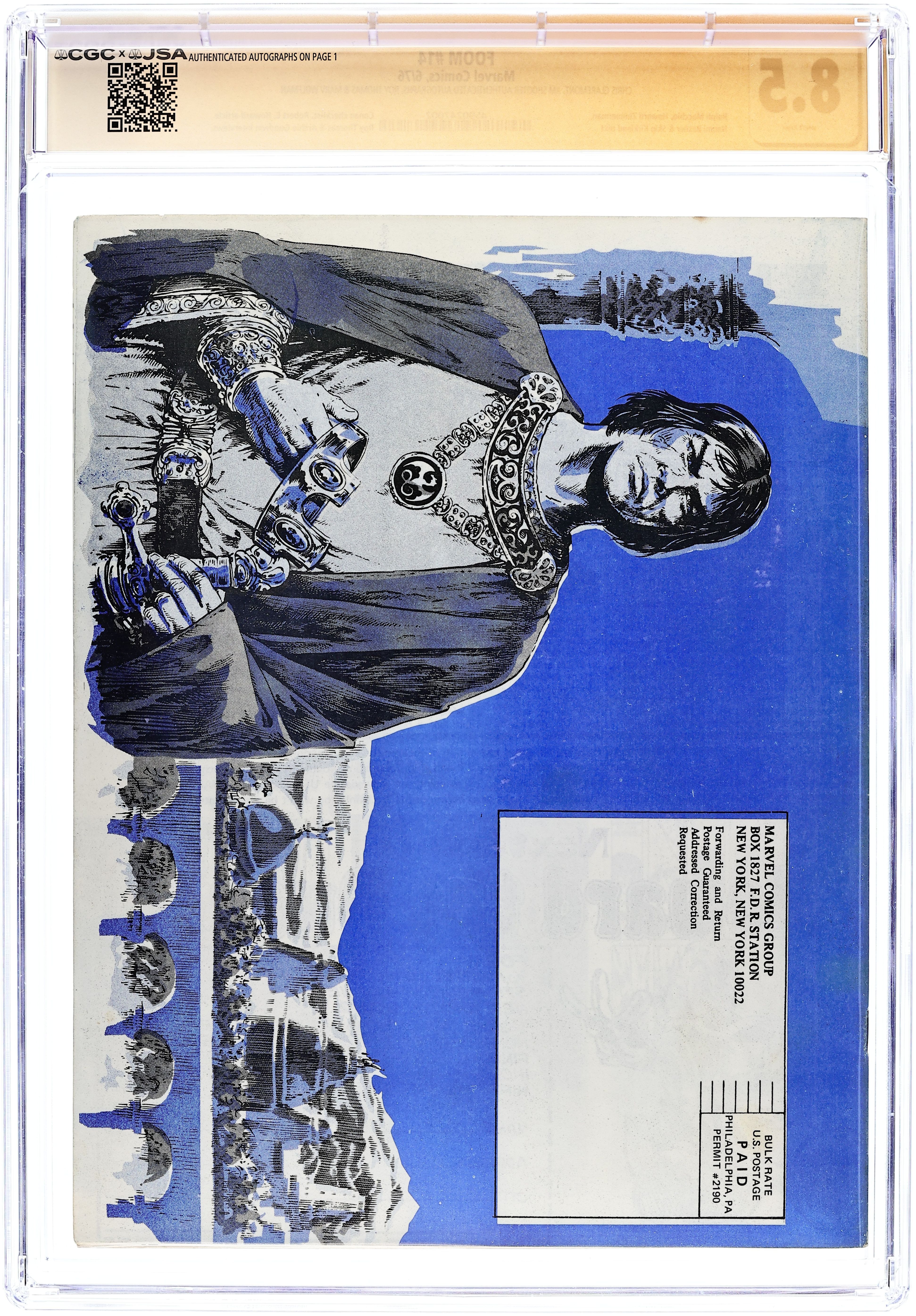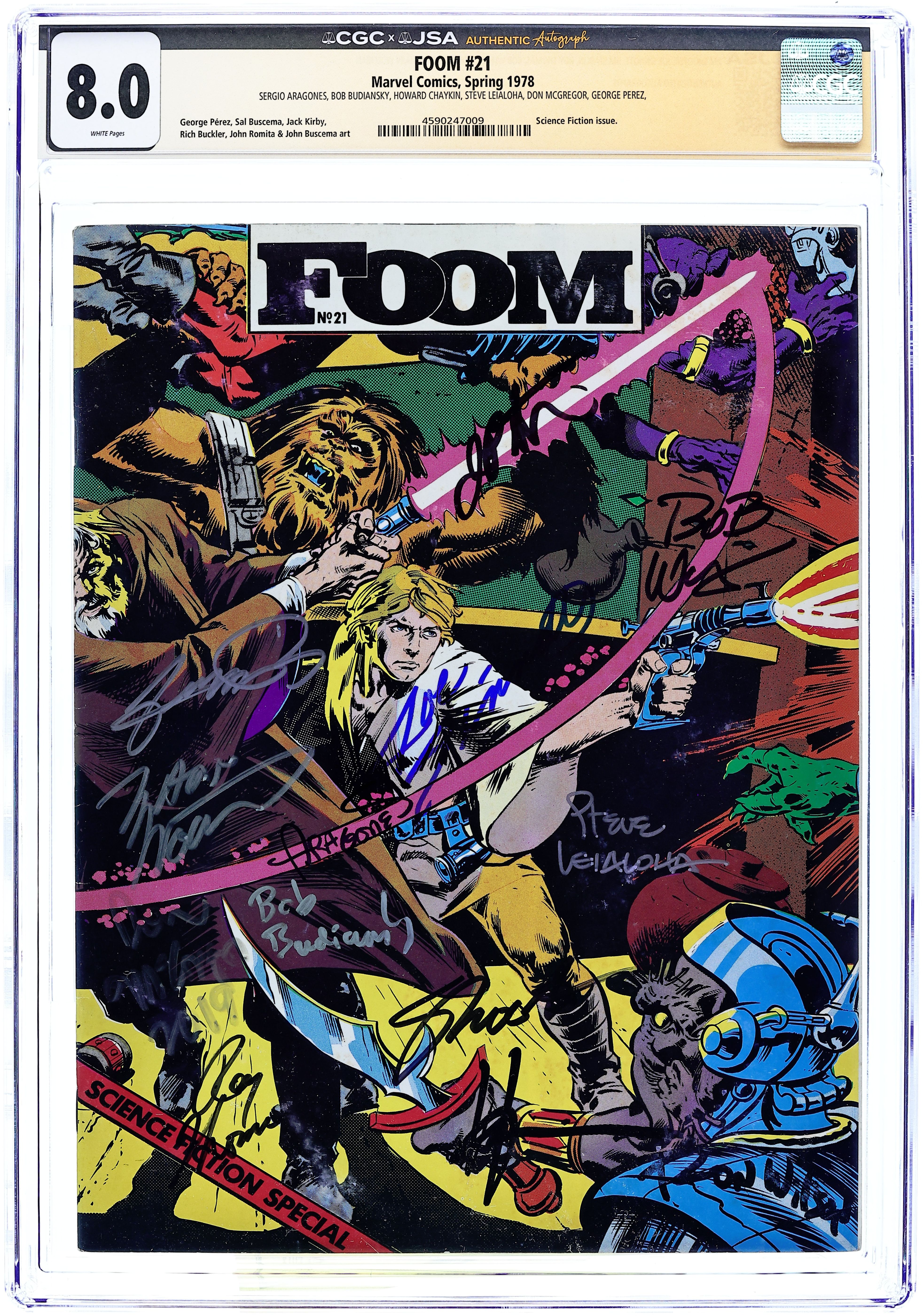 Fantastic Four issue, including an article and checklist (issues 1-132). Editor Jim Steranko produced several new illustrations for this issue. Bios (with photos) of Stan Lee, John Buscema, Roy Thomas, Joe Sinnott, and Gerry Conway.