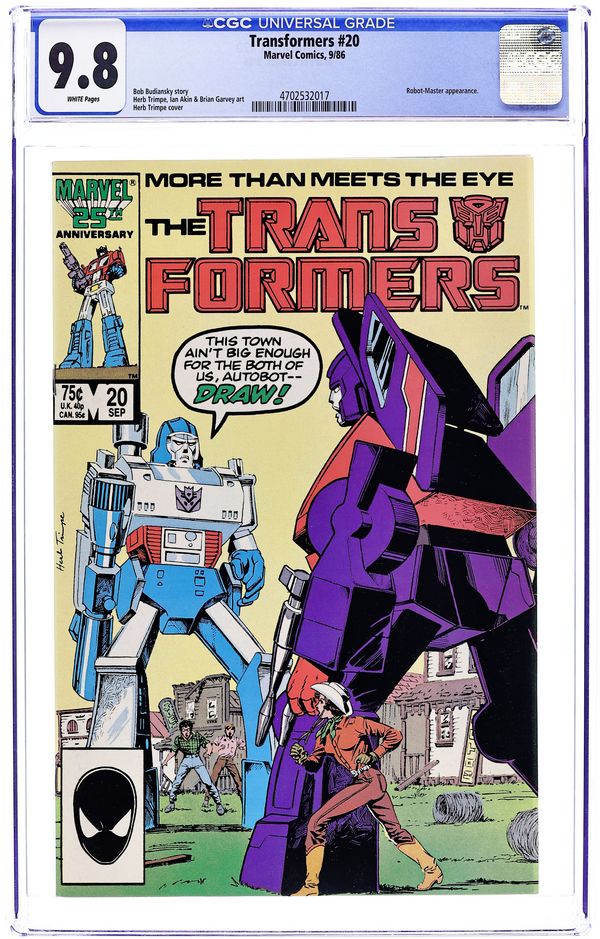 First Printing. Direct Edition. Script by Bob Budiansky and art by Herb Trimpe & Ian Akins & Brian Garvey. Cover by Herb Trimpe. Skids has had enough of being a warrior and a hero. So when he is found and repaired by a human, Skids decides that he is perfectly content to be that human's car in "Showdown." Cover price $0.75.