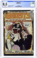 Last 20-cent cover-price issue. Cover art by Nick Cardy. The Hangmen of Specter Island?, art by E. R. Cruz; Nikos Kosta, a criminal, finds himself in an abandoned prison, haunted by the ghosts of other prisoners he betrayed. The Fangs of the Phantom Hound!, art by Ruben Yandoc [as Rubeny]; A ghostly dog saves two children from a couple of escaped prisoners. Visit from a Strange Specter, art by Alfredo Alcala; Oliver Sloane is forced by a ghost to decide who will perish, his wife or his son. How to Greet a Ghost text article by Murray Boltinoff. 36 pgs. $0.20. Cover price $0.20.