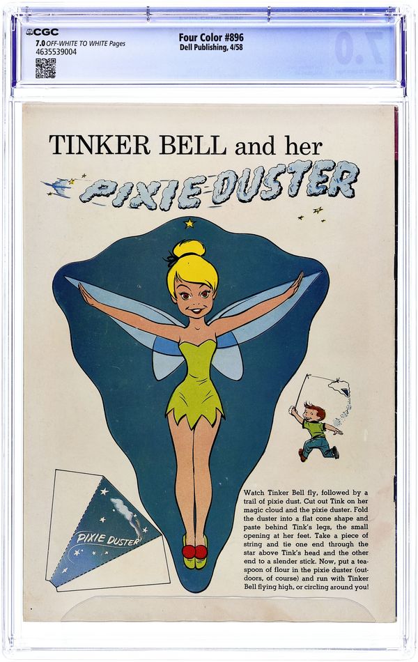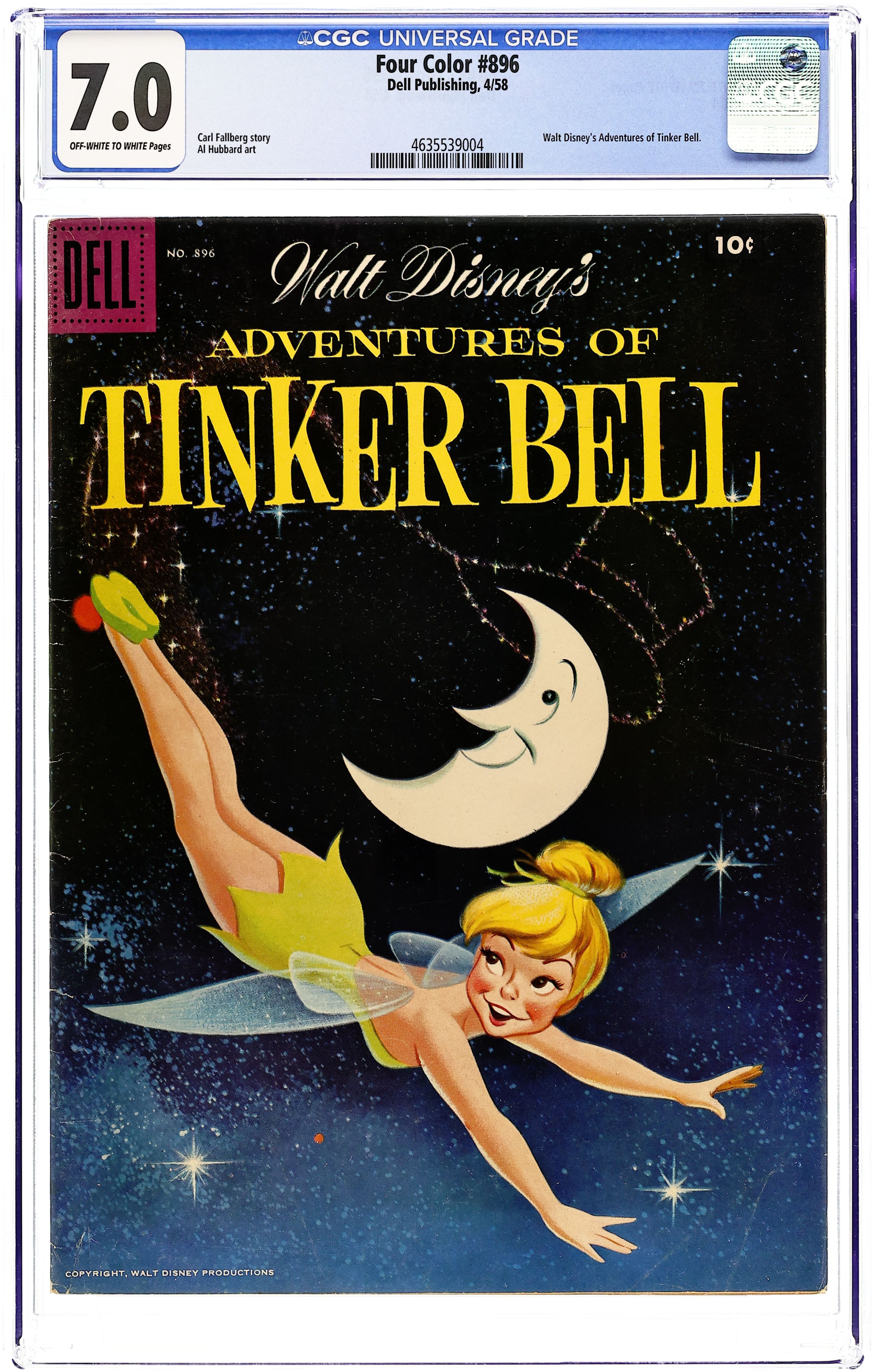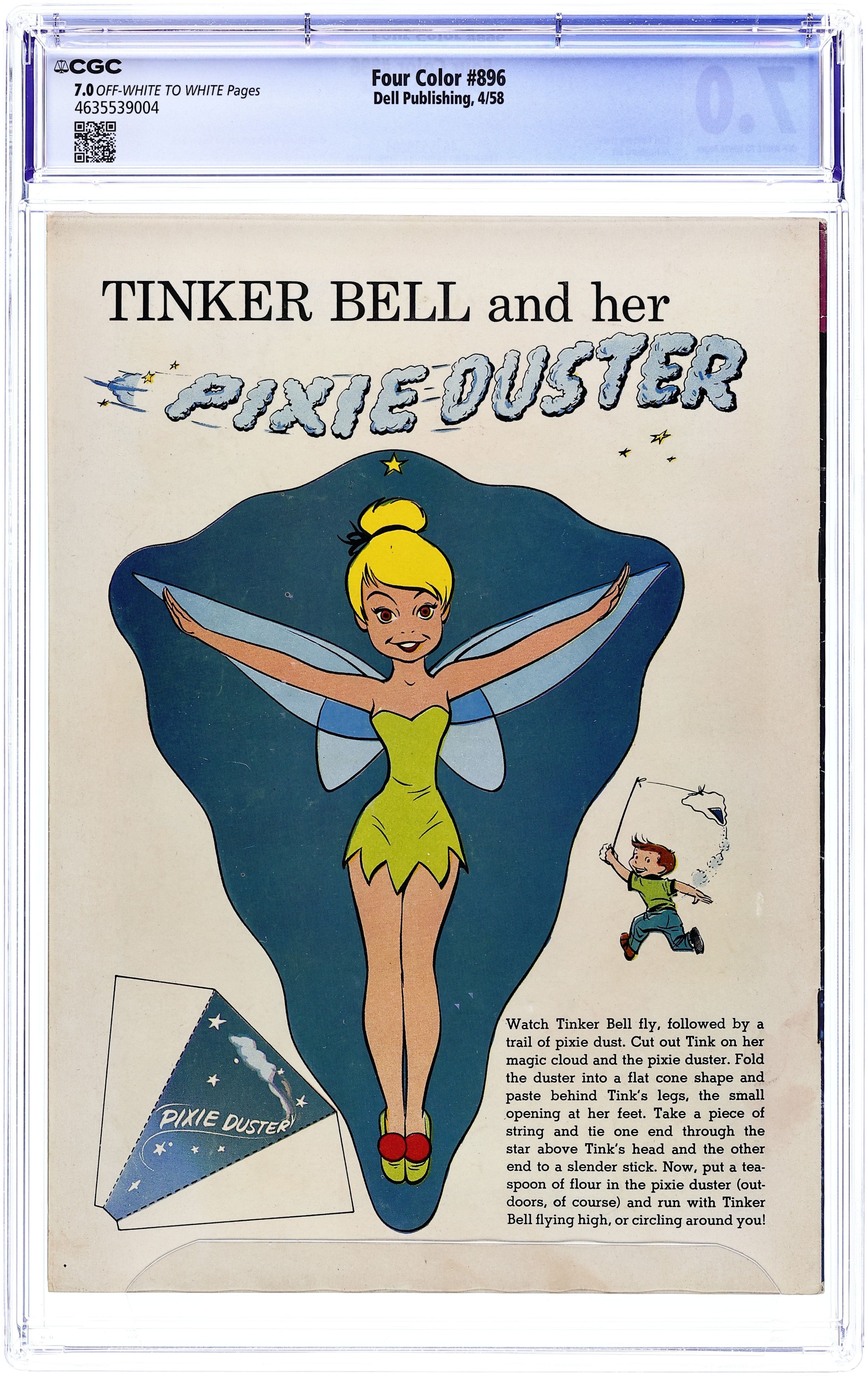 Walt Disney's Adventures of Tinker Bell. Painted Cover by Norm McGary? Stories by Carl Fallberg and various. Art by Al Hubbard. Featuring the tales "The Pirate Plot," "The Grounded Witch," "Dumbo's Dilemma" and "The Delayed Parade," plus two untitled stories and the activity page "Tinker Bell and Her Pixie Duster For You to Cut Out and Fly"! Starring Tinker Bell, Peter Pan, The Lost Boys, Captain Hook, Mr. Smee, Seven Dwarfs, The Wicked Witch, Dumbo, Pinocchio, Gepetto, Jiminy Cricket and Monstro! 36 pages, full color. Cover price $0.10.