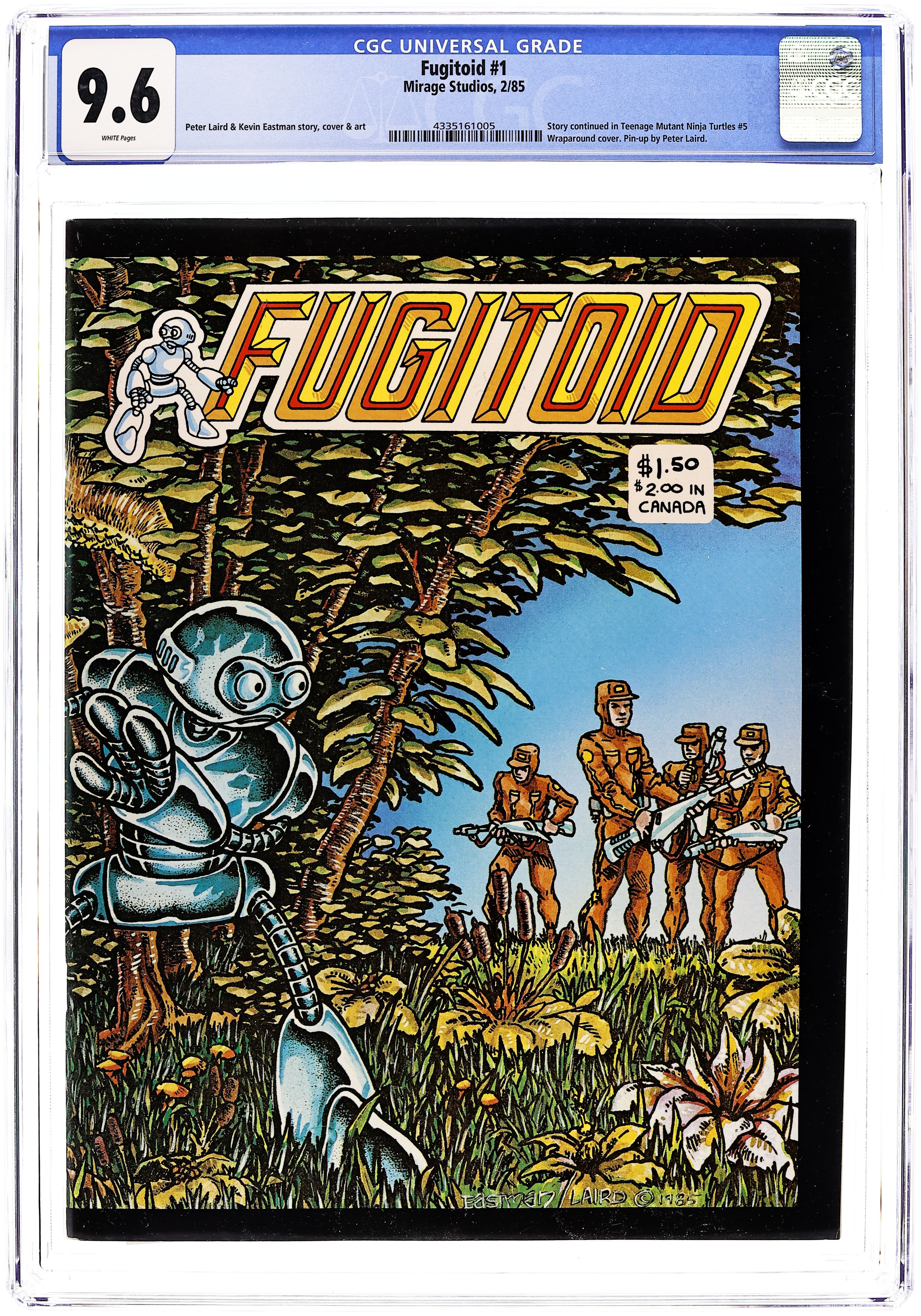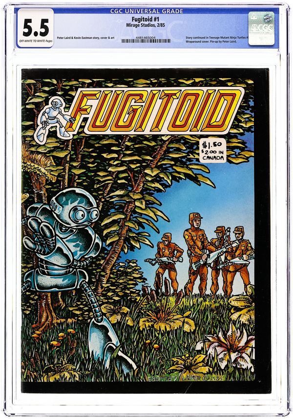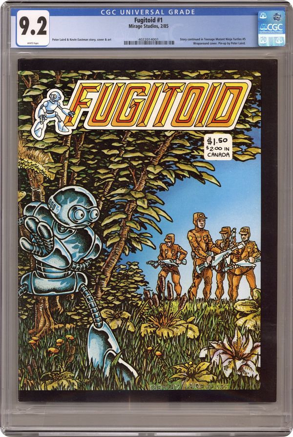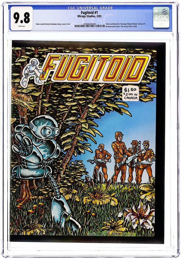 Starts Dec 15 Story, art and cover by Kevin Eastman and Peter Laird. On a far off world, Dr. Honeycutt is attempting to perfect a mind over matter headband. A freak thunderstorm short circuits his plans and transfers his consciousness to his gardening droid. The authorities believe the droid killed the doctor, putting him/it on the run. After a long chase, they almost have him until the sudden arrival of the Teenage Mutant Ninja Turtles. Story continues in Teenage Mutant Ninja Turtles (1985) #5. 44 pages, B&W. Cover price $1.50.