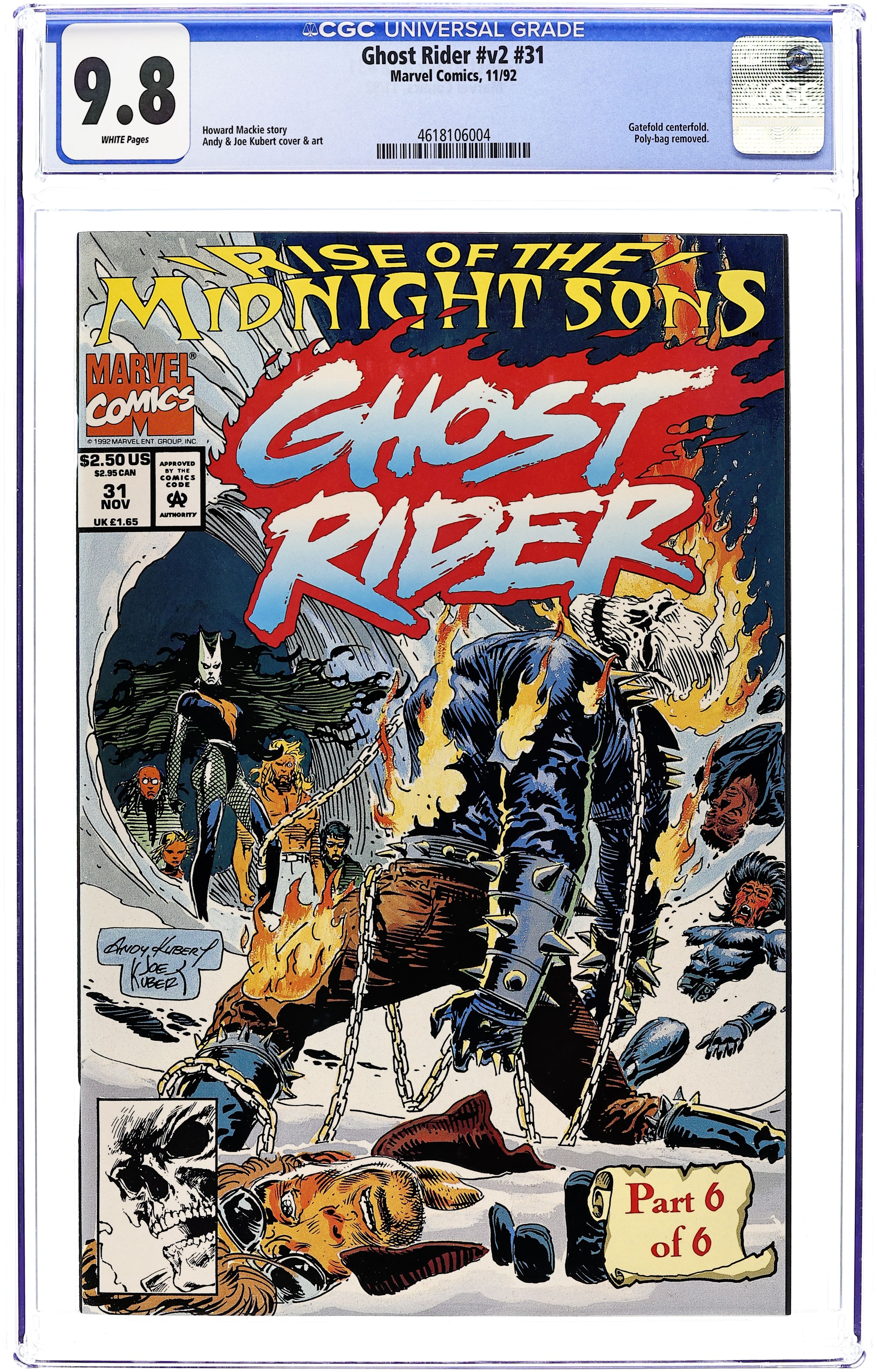 Tags: Rise of the Midnight Sons (part 6), Ghost RiderGhost Rider (1990 2nd Series) 31D.U CGC 9.8 Kubert Unbagged Variant