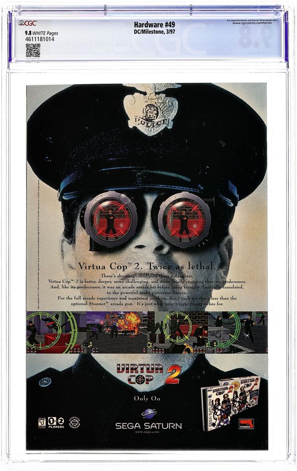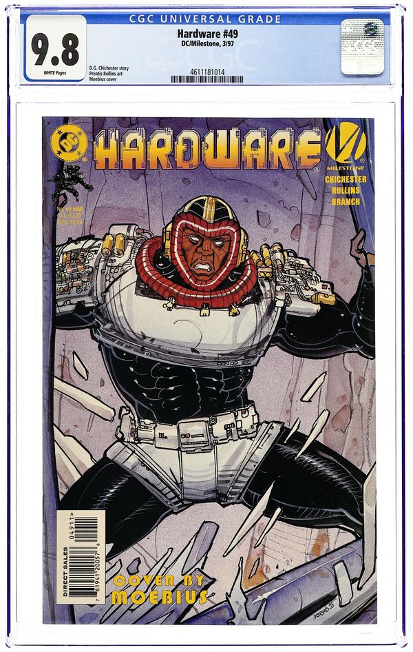 Unbagged Collector's Edition. Cover pencils by Denys Cowan, inks by Jimmy Palmiotti. Angry Black Man, script by Dwayne McDuffie, pencils by Denys Cowan, inks by Jimmy Palmiotti; Curtis Metcalf invents weapons for the wealthy and famous Edwin Alva; after asking for more money, Metcalf discovers Alva is corrupt; seeking justice, Metcalf becomes Hardware. Origin & 1st app. of Hardware; 1st app of Reprise, Edwin Alva. 36 pgs. $2.95. Cover price $2.95.