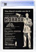 Pre-Code horror comics from Ajax-Farrell and their anonymous talents. A cop loses his badge for insisting that a haunted house is responsible for a series of murders. Bolton Baker encounters Gloria, who acts as bait for a werewolf's victims. Grimm, the Ghost Doctor, finds a love triangle at the heart of a woman's unearthly melancholy. Nightmare Mansion; Horror Hour; The Strange Bell of Obani!; Grimm, Ghost Doctor: Music and Mayhem; Monsters for Rent.... 36 pages, Full Color. Cover price $0.10.