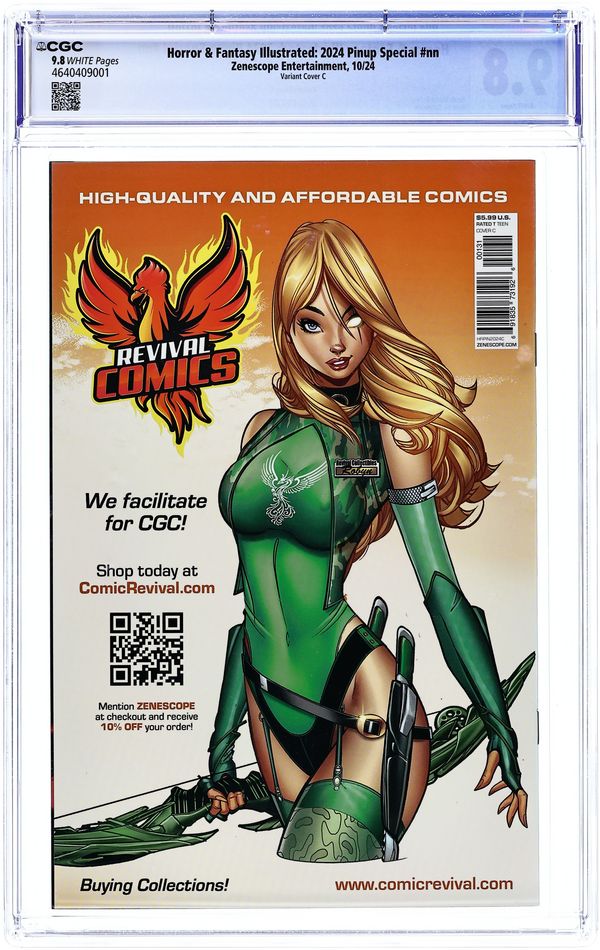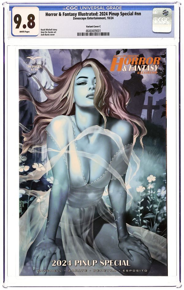 Written by Noah Mitchell. Cover by Josh Burns. Just in time for the Halloween season, comes the first ever Horror & Fantasy Illustrated Pinup Special! Get ready to check out all of these new spooky heroines and villainesses, donning original sexy costumes, along with some newly-imagined cosplays of pop culture's most famous monsters! Some of the industry's top artists contribute gorgeous pin-ups in this stunning collection. Also includes a never before published short story! 40 pages, full color. Rated T Cover price $5.99.