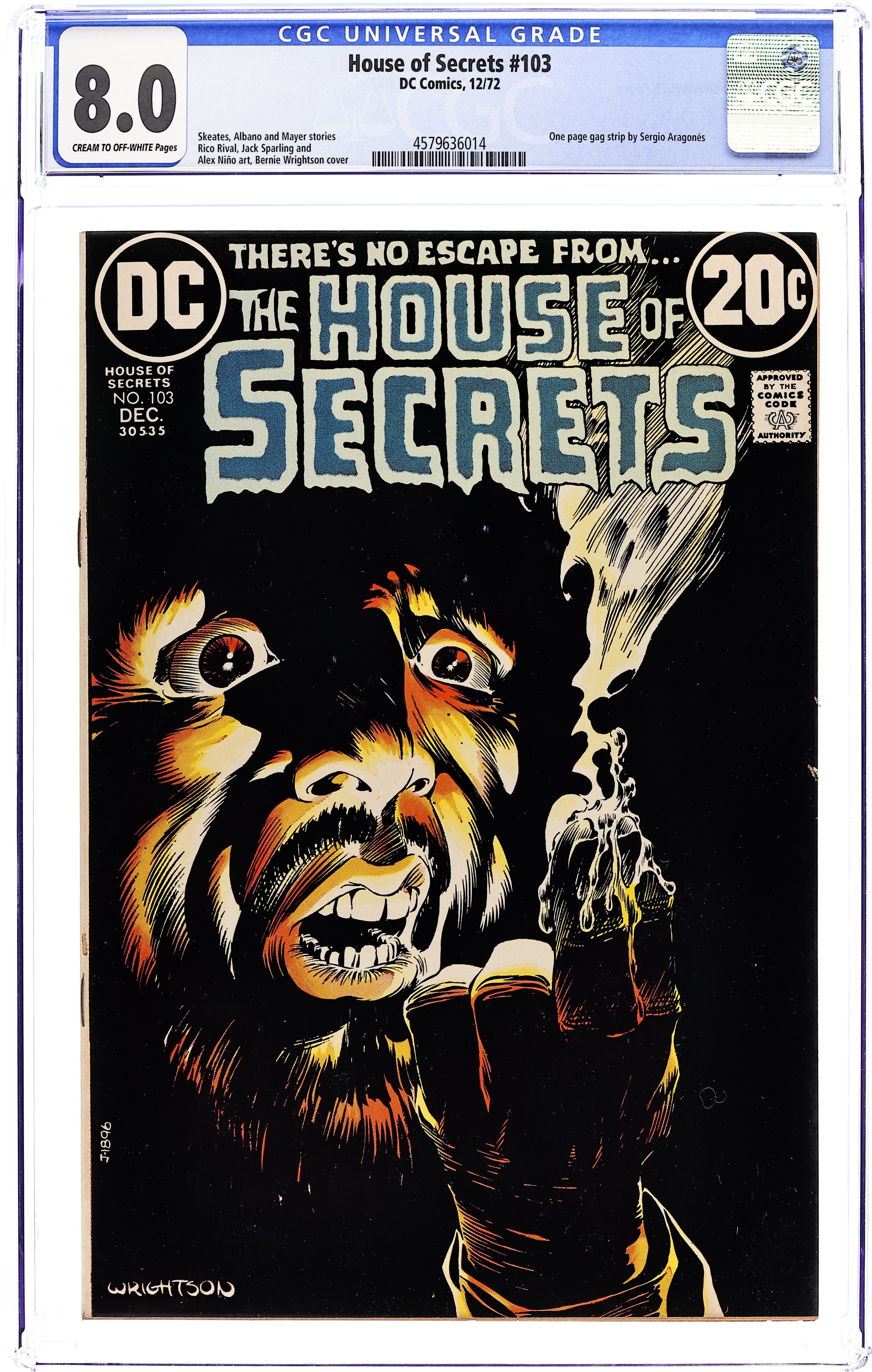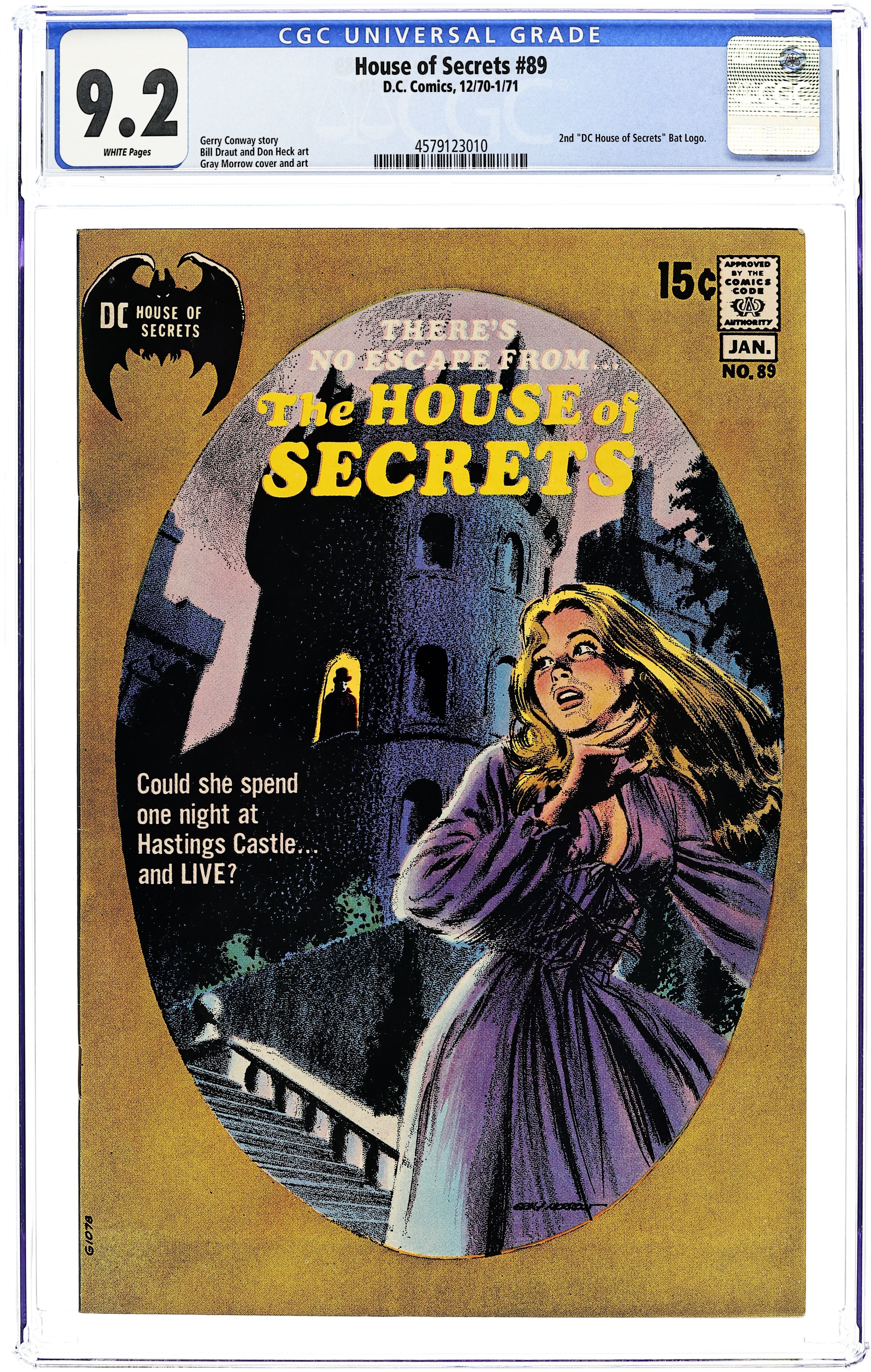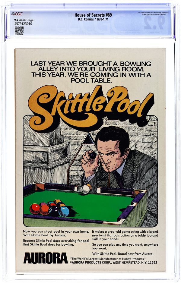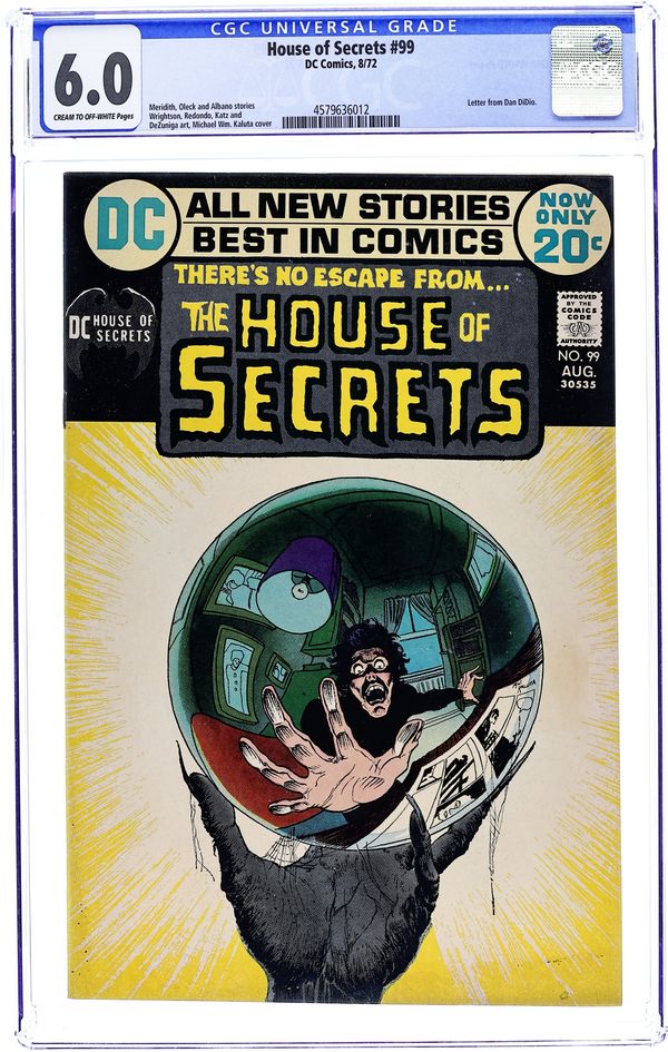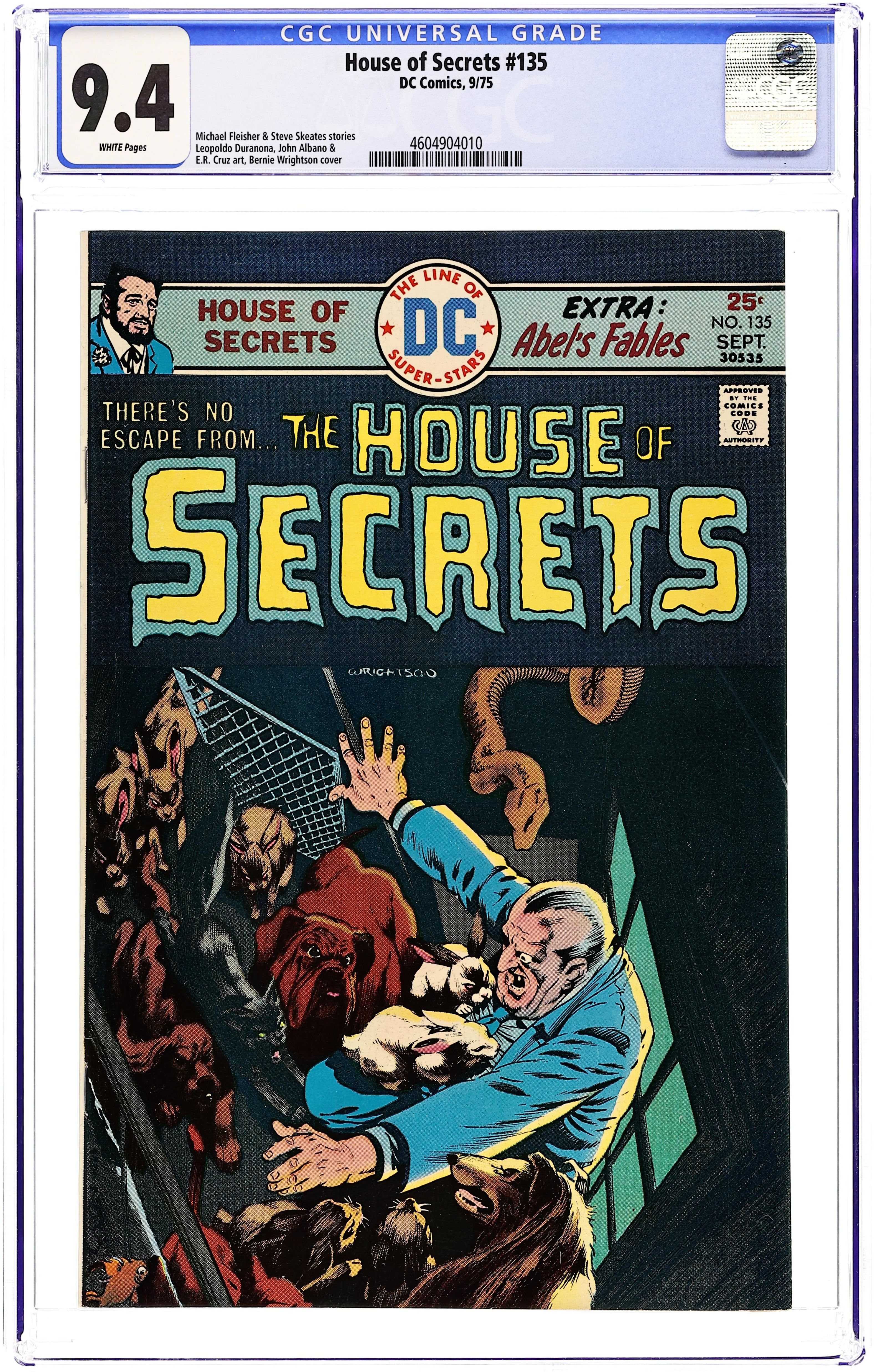 Starts Jan 3 First 15-cent cover. First appearance of Abel. Abel acts as a storyteller and host of the series, as well as the caretaker of the House of Secrets. Cover art by Neal Adams. "Don't Move It!", script by Mike Friedrich, pencils by Jerry Grandenetti, inks by George Roussos; This story provides the background of the House of Secrets, who built it and its history, and leads into the next story which talks about Abel's taking possession of it. "House of Secrets," art by Bill Draut; A realty agent helps Abel move into the House of Secrets where Abel bumps into Cain; When Cain asks Abel who he is talking to, Abel indicates the realty agent who dissipates into a spirit which merges into the House of Secrets. "Burn This House!" text story. "Aaron Philips' Photo Finish!", script by Gerry Conway, art by Jack Sparling; Abel tells Cain a story about a photographer who takes blackmail photos being sent out to photograph the House of Secrets, but the house swallows him up, leaving only a photograph of the man's shocked expression as the only evidence he was ever inside. 36 Pages, Full Color. Cover price $0.15.