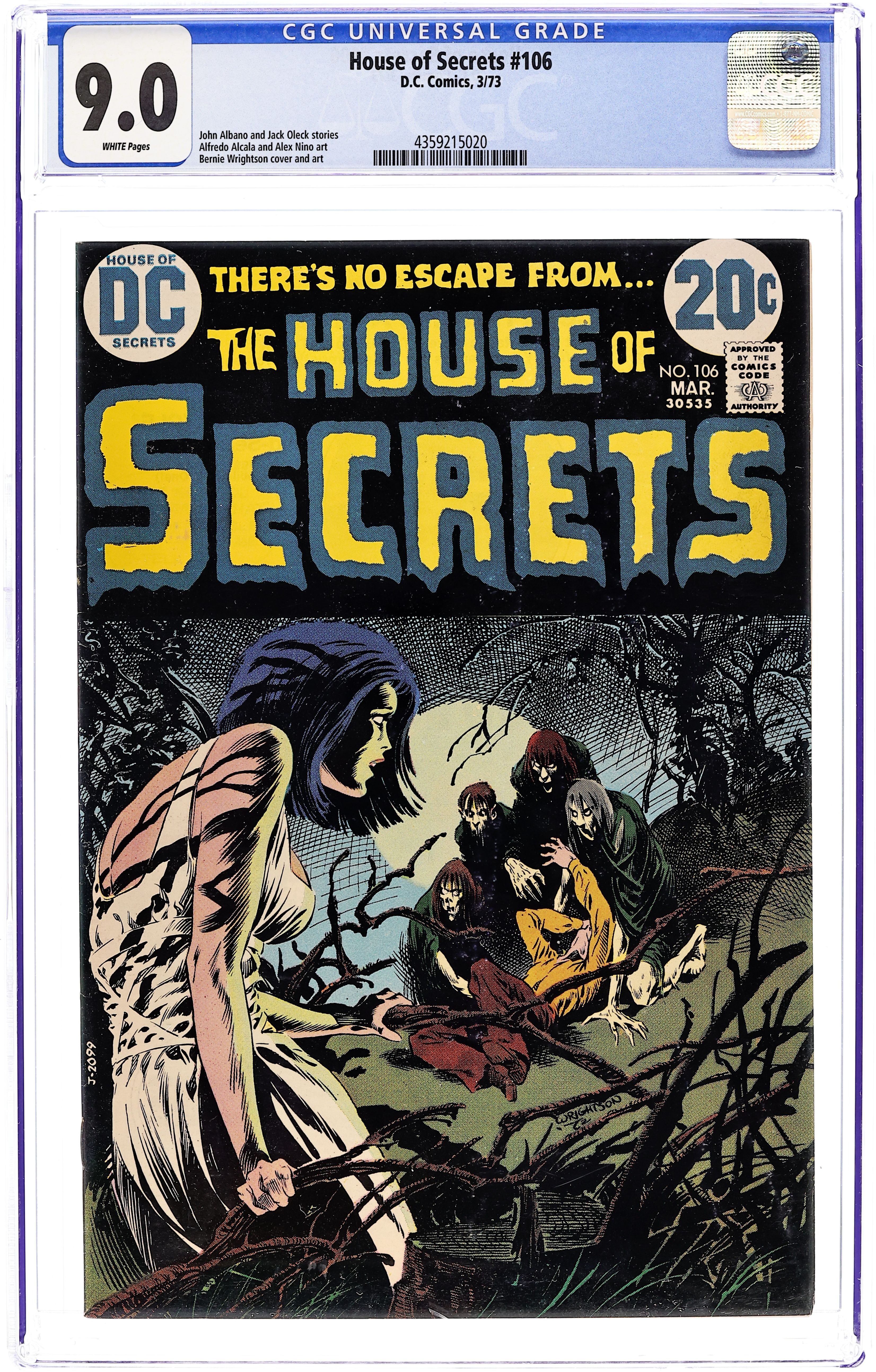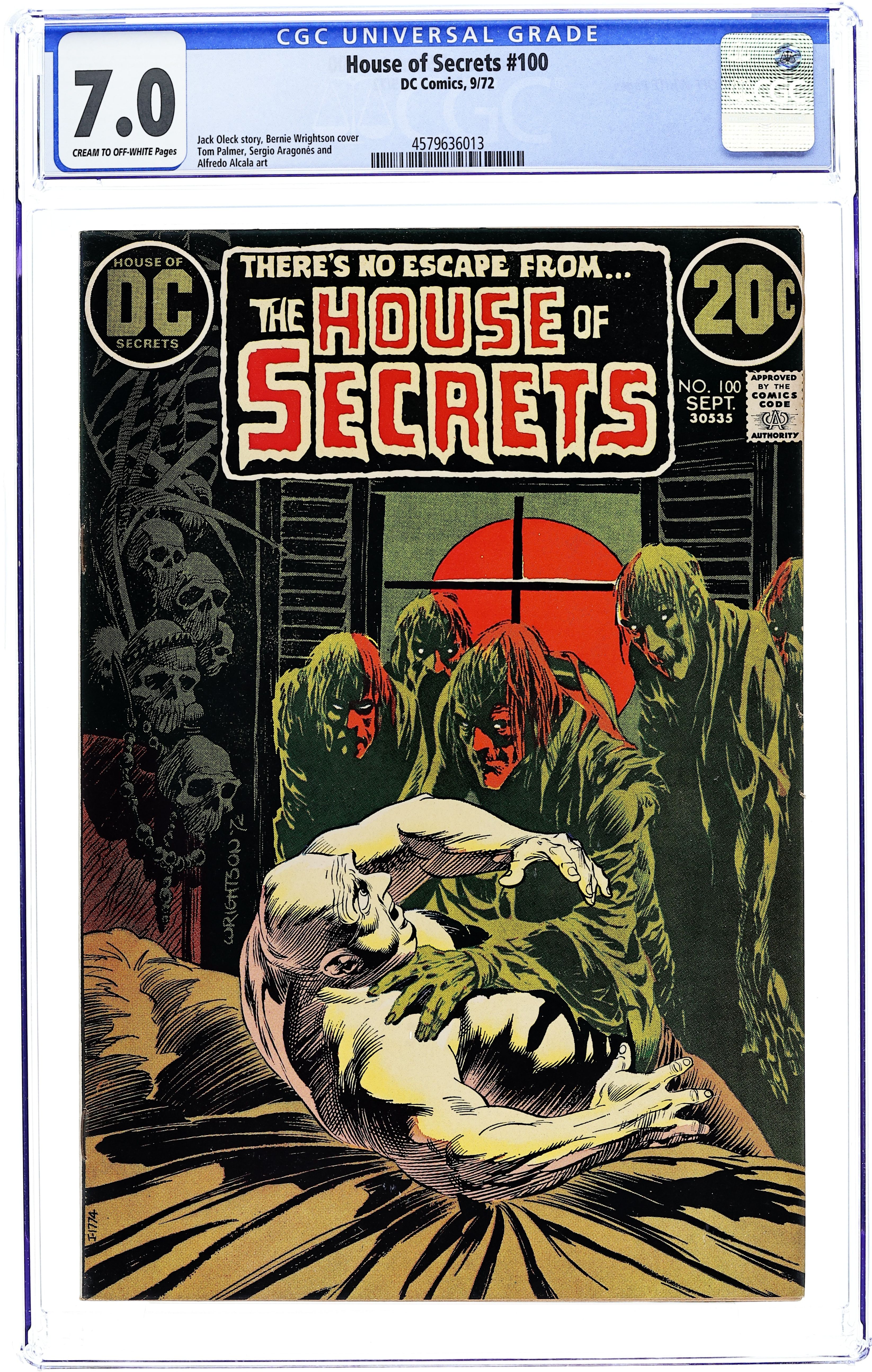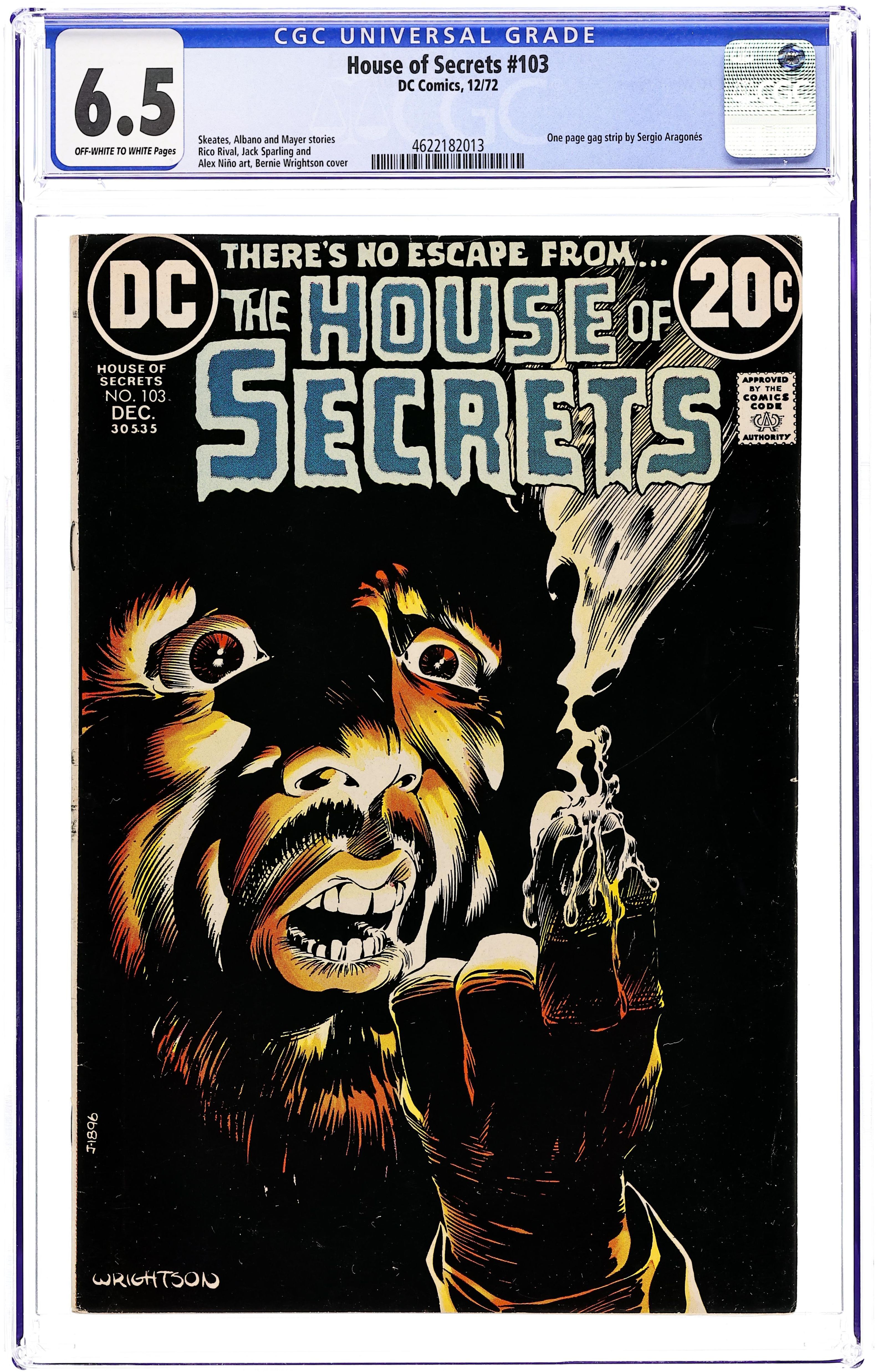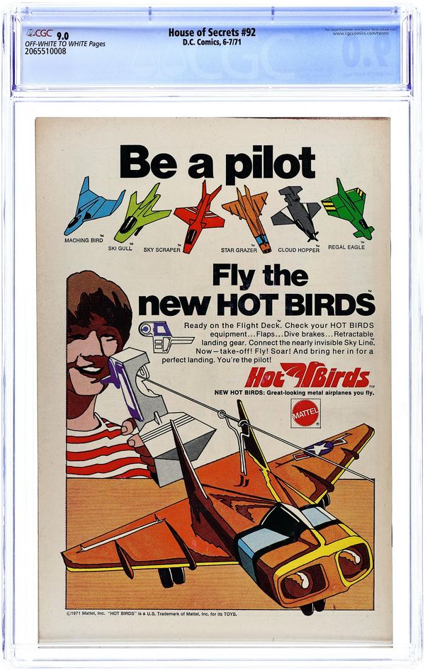 Starts Jan 3 First 15-cent cover. First appearance of Abel. Abel acts as a storyteller and host of the series, as well as the caretaker of the House of Secrets. Cover art by Neal Adams. "Don't Move It!", script by Mike Friedrich, pencils by Jerry Grandenetti, inks by George Roussos; This story provides the background of the House of Secrets, who built it and its history, and leads into the next story which talks about Abel's taking possession of it. "House of Secrets," art by Bill Draut; A realty agent helps Abel move into the House of Secrets where Abel bumps into Cain; When Cain asks Abel who he is talking to, Abel indicates the realty agent who dissipates into a spirit which merges into the House of Secrets. "Burn This House!" text story. "Aaron Philips' Photo Finish!", script by Gerry Conway, art by Jack Sparling; Abel tells Cain a story about a photographer who takes blackmail photos being sent out to photograph the House of Secrets, but the house swallows him up, leaving only a photograph of the man's shocked expression as the only evidence he was ever inside. 36 Pages, Full Color. Cover price $0.15.