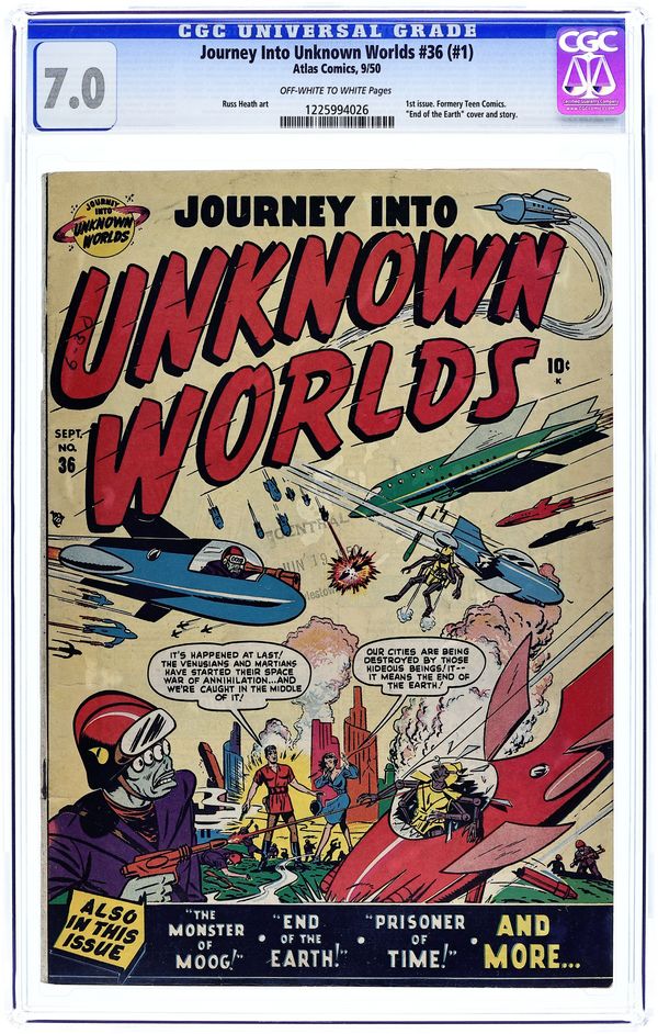 "Worlds at War!" with art by Jack Davis; "One Had Vanished!" with art by Steve Ditko; "Uneasy Lies the Head!"; "Adrift in Space!" with art by Don Heck; "The Green Fog!" (art by Vince Colletta?); and a two-page text story, "The Remedy Oil." Joe Sinnott cover. Cover price $0.10.