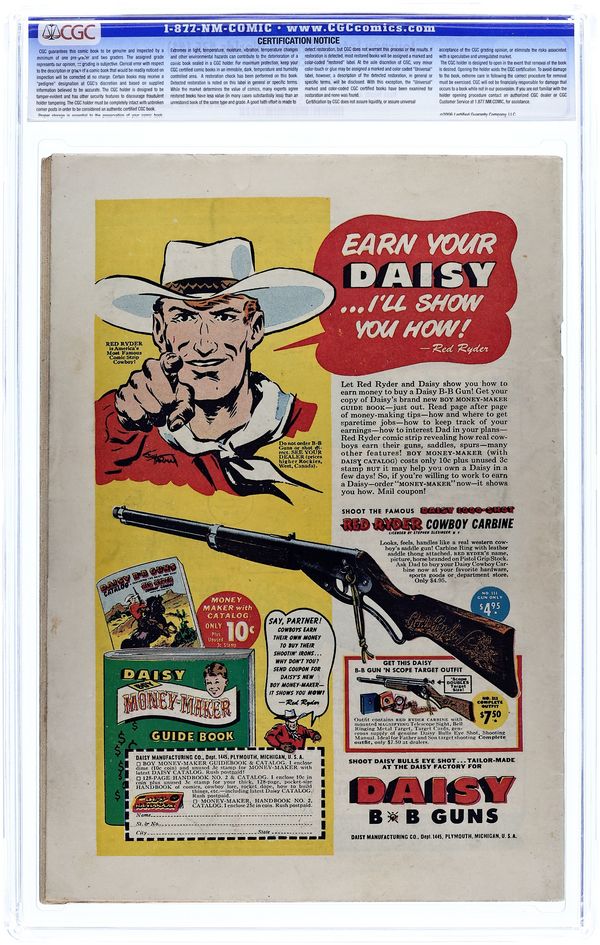 Cover by Russ Heath. Coffin of Hell!; The Communists of East Germany are baffled by the murders of several of their agents. I Can Hear You Think!, script by Paul S. Newman, art by Vic Carrabotta; After the first atomic bomb explodes children are born with the ability to read minds, which the government put to use as a tactical defense against the Communists. The New Tenants, art by Bill Everett ; A man works for a miser who cheats people on real estate deals until he gets so fed up with his boss selling run down dumps to kindly old folks that he kills him and shores up the floor support in the cellar with the man's body. Wilson's Woman, art by Doug Wildey; A scientist moves into a small town that proves his undoing when he builds a robot for a mate and the townspeople suspect that he has hypnotized the beautiful woman into remaining with the homely man. 36 pgs., full color. $0.20. Cover price $0.20.