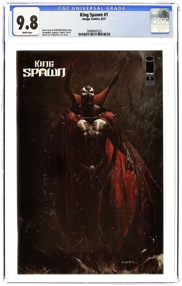 Written by Sean Lewis and Todd McFarlane. Art by Javier Fernandez & Various. Cover by Puppeteer Lee. A historical NEW ongoing SPAWN series begins! The launch of this book, nearly three decades in the making, further expands the SPAWN UNIVERSE with a growing presence of Hell, Heaven, and Heroes here on Earth. A classic villain from Spawn's past has begun asserting his powers on Earth by corrupting as many souls as possible. And only Spawn knows that he even exists. Continuing the dramatic battles from SPAWN'S UNIVERSE #1, this is where it all begins!!!!! Don't miss out...the last time a new ongoing SPAWN series launched was in 1992. 56 pages, full color. Cover price $5.99.