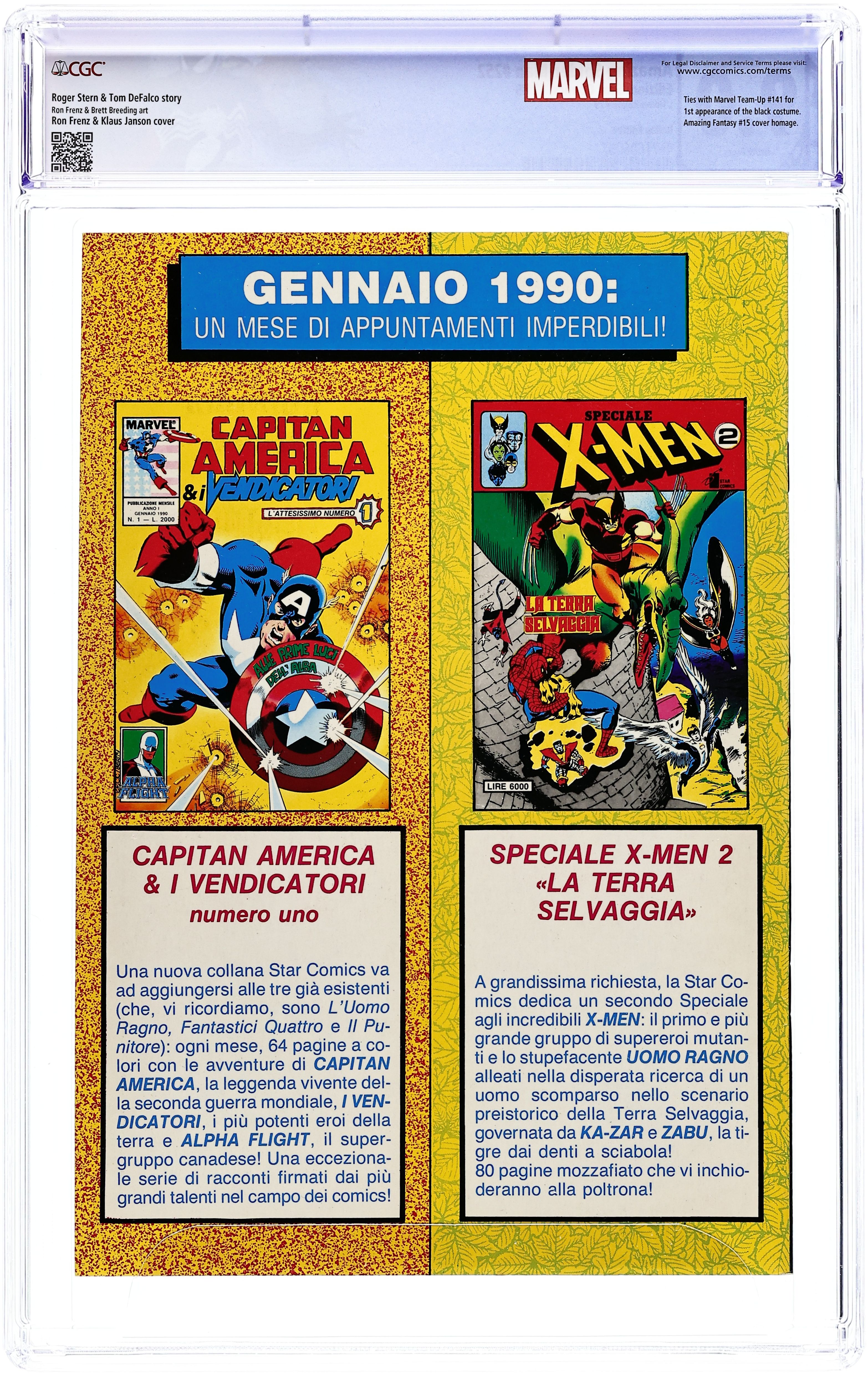 Italian Reprint series. Reprints Cover from Amazing Spider-Man (1963 1st Series) #252. Reprints material from Amazing Spider-Man (1963 1st Series) #252, Spectacular Spider-Man (1976 1st Series) #90, Uncanny X-Men (1963 1st Series) #152 and #153. Full Color. 68 pages. 6 5/8" X 9 7/8".