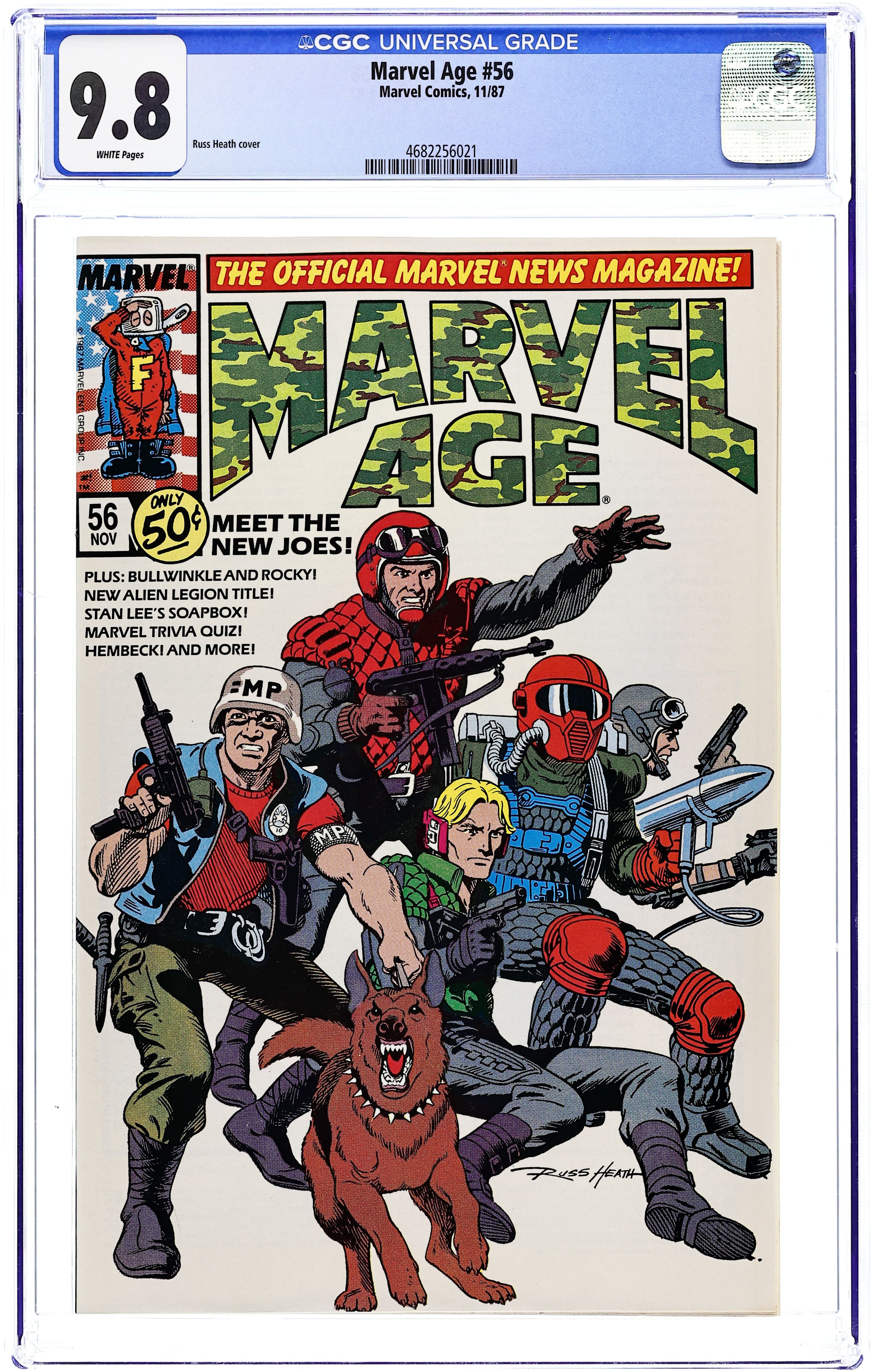 G.I. Joe Top Secrets Uncovered, with comments from Larry Hama; 'Willie Lumpkin' strip by Stan Lee and Dan DeCarlo; 2-page Fred Hembeck strip; interview with Mark Gruenwald; a look at Alien Legion from the EPIC line, with comments from Carl Potts and Chuck Dixon; Star Spotlight: Bullwinkle and Rocky; The Marvel Age: 1975 (Part III). G.I. Joe cover by Russ Heath. Cover price $0.50.
