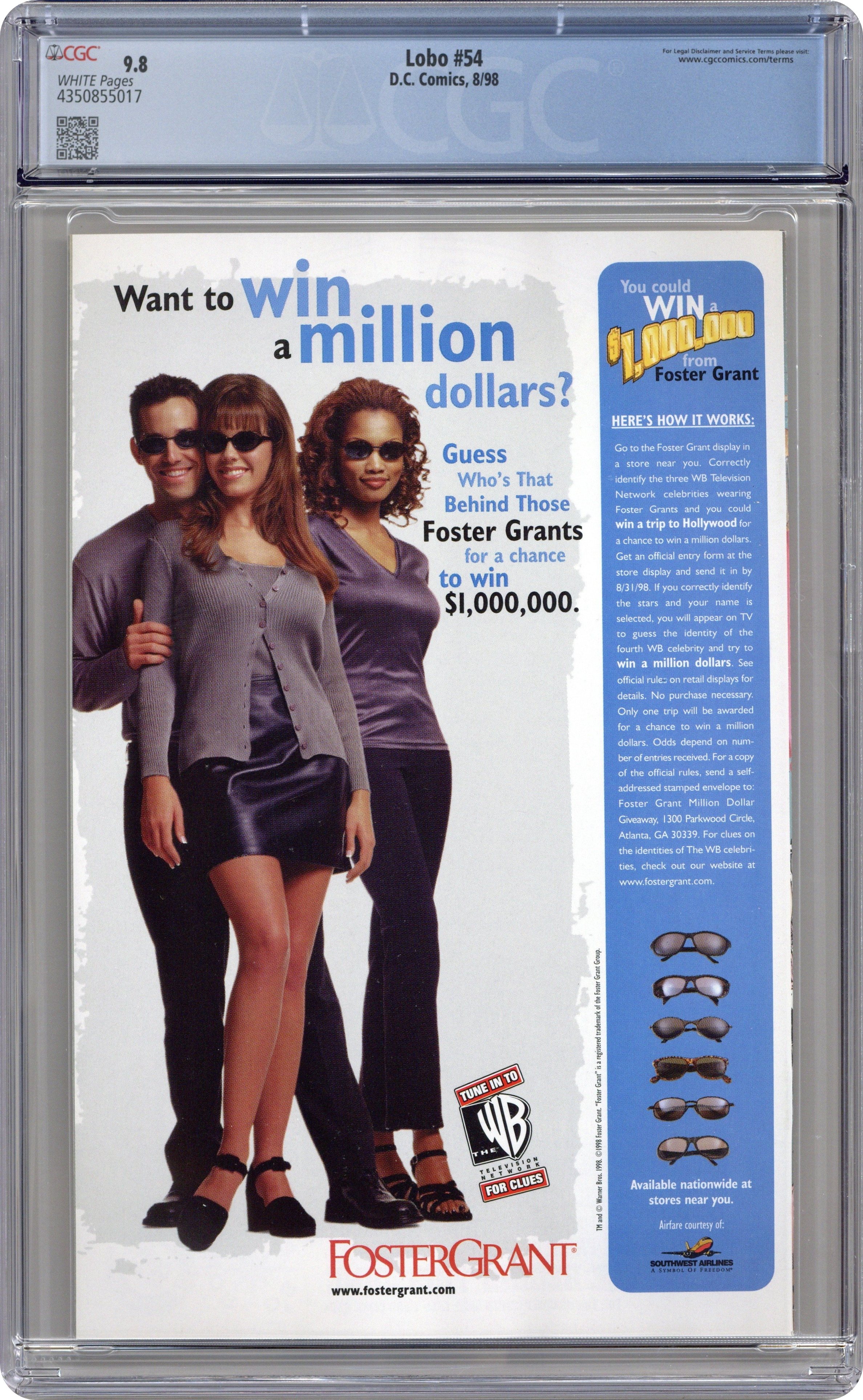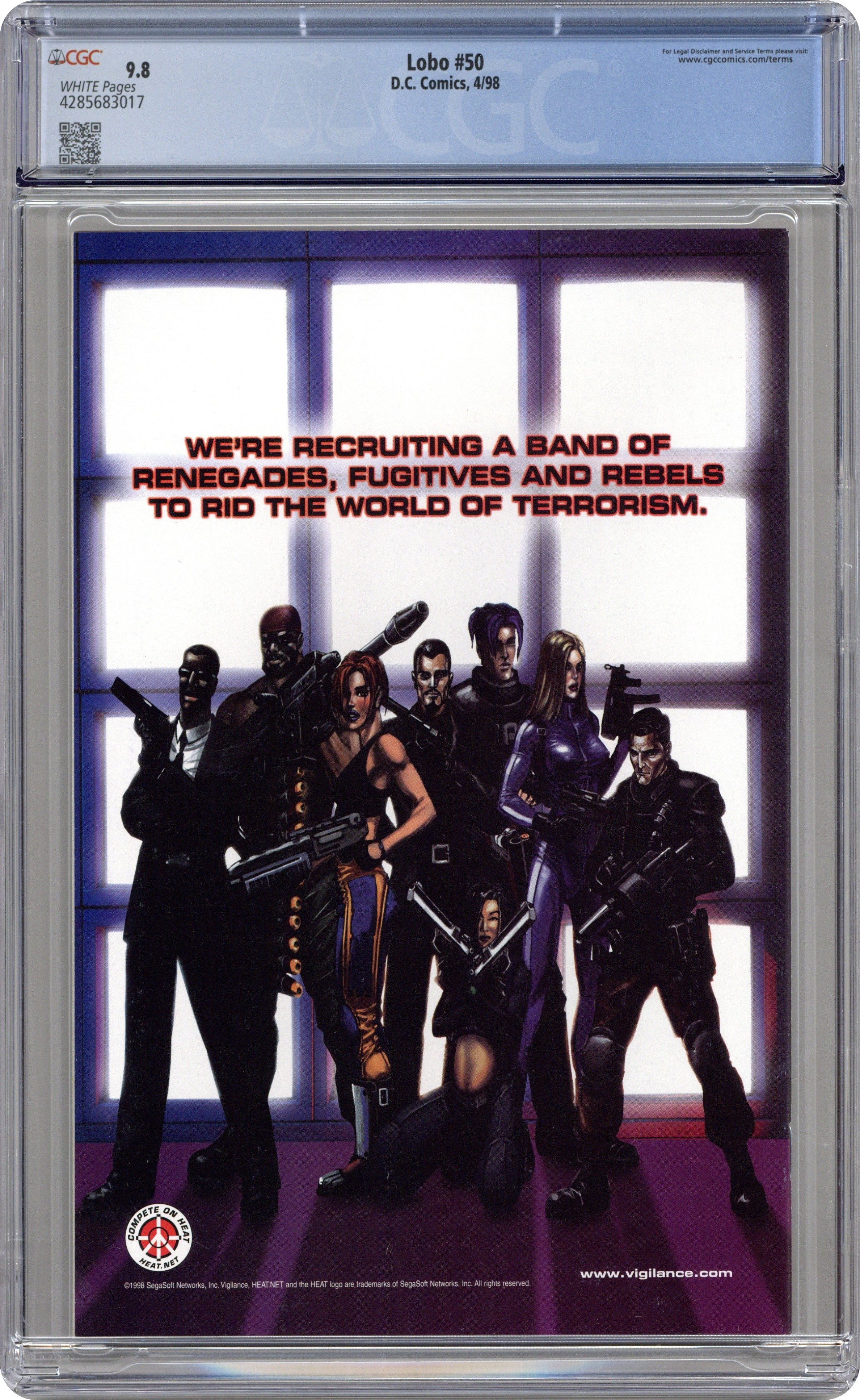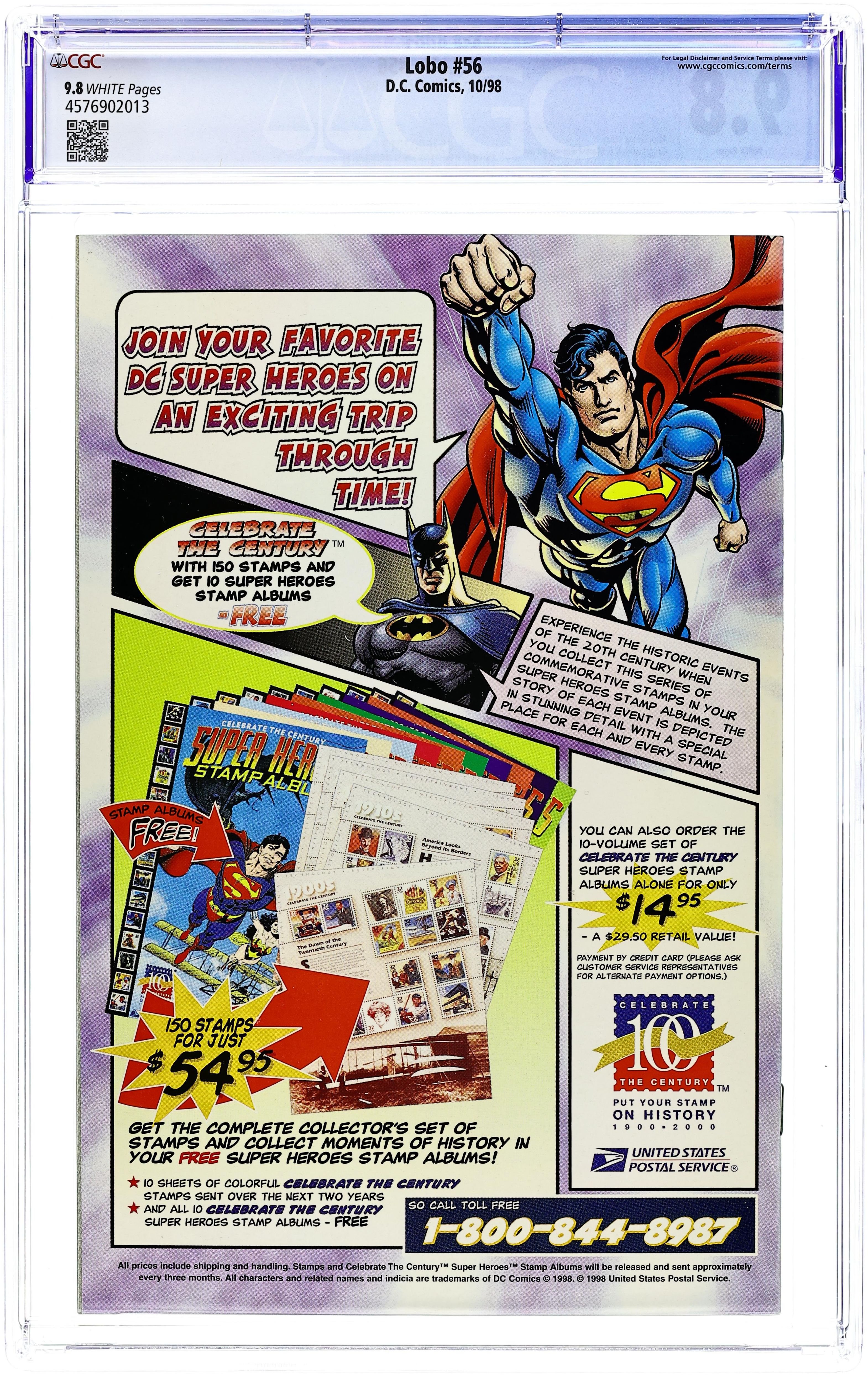 Cover pencils by Carl Critchlow, inks by Mark Propst. "Dead Heroes Don't," script by Alan Grant, pencils by Carl Critchlow, inks by Mark Propst; The heroes all have the same nightmare... Lobo's been hired to kill them; appearances by Dawg; Keith Giffen; Flash [Wally West]; Big Barda; Martian Manhunter [J'onn J'onzz]; Superman Blue [Clark Kent; Kal-El]; President Bill Clinton; Sovereign Seven; Power Girl; Green Lantern [Kyle Rayner]; Legion of Super-Heroes [Brainiac 5; Saturn Girl; Light Lass; Shrinking Violet; Ultra Boy; Ferro; Phantom Girl; Cosmic Boy]; Spectre [Jim Corrigan]; Phantom Stranger; Captain Atom [Nathaniel Adam; aka Cameron Scott]; Supergirl; Green Lantern [Alan Scott]; Mister Miracle [Scott Free]; Captain Marvel [Billy Batson]; Mary Marvel; Atom [Ray Palmer]; Superboy; Steel [John Henry Irons]; Plastic Man [Eel O'Brian]; Impulse [Bart Allen]; Firestorm [Ronnie Raymond]; and Starman [Jack Knight]. Preview of cover to LOBO #51. 36 pgs., full color. Cover price $2.25.