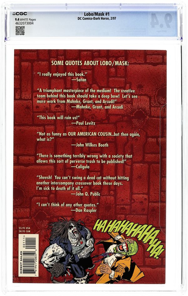 Lobo, who fought to the death in issue #1, rampages his way through the afterlife until he is reincarnated as a...woman? Boy, are the guys gonna rib him or what? Written by Keith Giffen and Alan Grant, with art and painted cover by Simon Bisley. Suggested for Mature Grown-Ups. New Format. Cover price $1.50.