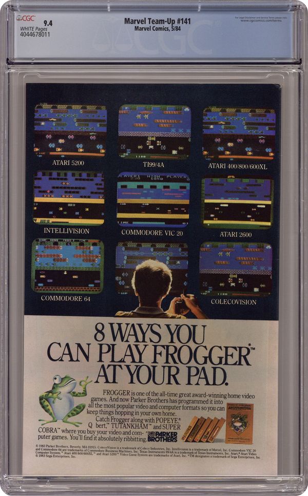 Direct Edition. "The Best Things In Life Are Free...But Everything Else Costs Money!". Guest-starring Spider-Man and Frog-Man. Script by J.M. DeMatteis. Pencils by Kerry Gammill. Inks by Mike Esposito. Cover by Paul Smith. Eugene Palilio had such a great time playing Frog-Man (in Marvel Team-Up 121) he decides that it's time for another adventure! When an opportunity presents itself during a restaurant robbery, Frog-Man springs into action! Predictably, Eugene gets in over his head against the White Rabbit, so the web-slinger swoops in to rescue his besieged friend! After another close life-and-death call, Eugene will probably wise up and retire...or will he? Not as long as the White Rabbit is on the loose! First appearance of the White Rabbit. Flashback cameo by Daredevil. 36 pages. Cover price $0.60.