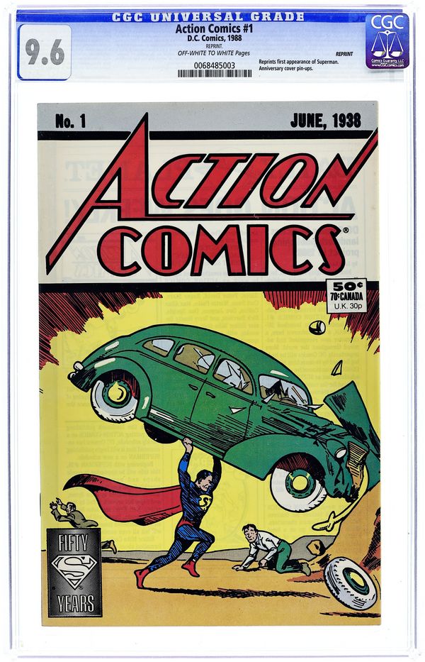 16-page reprint of Action #1. 1992 reprint $1.00 cover price. Slick cover. Has World Without Superman: Funeral For a Friend ad last interior page. Blank interior covers. Cover price $1.00.If you add this item to your want list, we will email you when it becomes available.