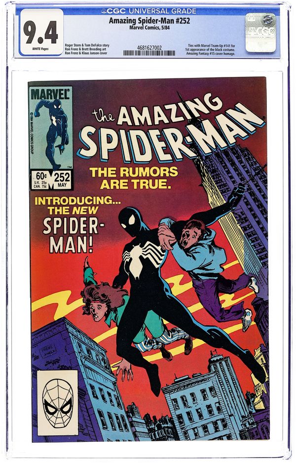 Tags: Chronological Appearances of Spider-Man's Black Costume (part 09 (1st Official Debut)), Marvel Legacy Numbering: Amazing Spider-Man (part 252), Secret Wars (1984) (part Aftermath 01), Spider-Man$3,700.00