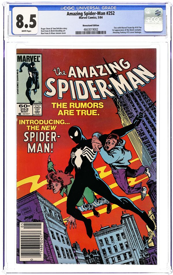 Tags: Chronological Appearances of Spider-Man's Black Costume (part 09 (1st Official Debut)), Marvel Legacy Numbering: Amazing Spider-Man (part 252), Secret Wars (1984) (part Aftermath 01), Spider-Man$5,900.00