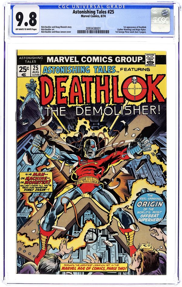 Cover art by Rich Buckler. The Enemy: Us!, script by Rich Buckler (Concept; Plot) and Doug Moench (Plot; Script), pencils by Rich Buckler, inks by Pablo Marcos; Deathlok goes on a mission to rescue Mike Travers (an old army buddy) from Major Simon Ryker; He manages to extract Mike but he is recaptured by Major Ryker's men; When Deathlok goes after Mike again he encounters the War-Wolf, who Major Ryker says is Mike's mind in a cyborg body. Advertisement for 18 Marvel-hero stick-ons from Our Way Studio. Marvel Value Stamp #66 featuring General Ross. Promo for Monsters of the Movies #2. Stan Lee's Soapbox. Promo for Marvel Treasury Edition #1, art by John Romita. 32 pgs. $0.25. Cover price $0.25.