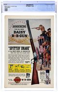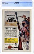 Western Tales of action and adventure starring the famous female sharpshooter, Annie Oakley: "Just Love That Cowhand"; Annie is hired on the Barr-X Ranch after capturing a wild steer. "The Grecian Wiggle" text story. "She's My Gal, Pa"; A lawyer comes looking for a blonde girl who ran away from home and everybody thinks it's Annie. "Heart Havoc," pencils by Ed Winiarski; Gabby thinks he's finally going to get a date with Hedy but it doesn't quite turn out that way. "Wrong Steer," inks by Chris Rule; Sally arranges a rodeo so that Slim can defeat Annie in tests of skill. 36 pgs., full color. Cover price $0.10.