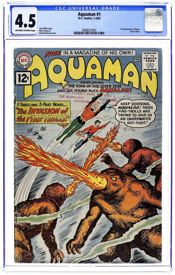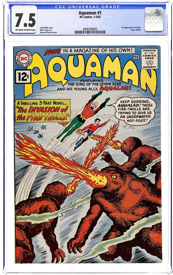 Cover art by Nick Cardy. The Invasion of the Fire Trolls, script by Jack Miller, art by Nick Cardy; Quisp helps Aquaman and Aqualad against three Fire-Trolls that escaped from an undersea volcano. Homer Goes Skin Diving humor page by Henry Boltinoff. Wonders of the Water World article. 36 pgs. $0.12. Cover price $0.12.
