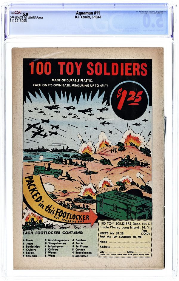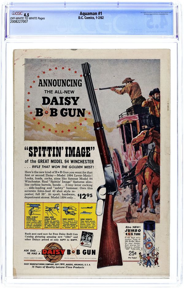 Cover art by Nick Cardy. Captain Sykes' Deadly Missions, script by Jack Miller, art by Nick Cardy; Aquaman and Aqualad must find two treasures for Captain Sykes or he won't release the ship he has captured. Ollie humor page by Henry Boltinoff. Facts on Fish educational page by Henry Boltinoff. The Fastest Fish Alive article. 36 pgs. $0.12. Cover price $0.12.