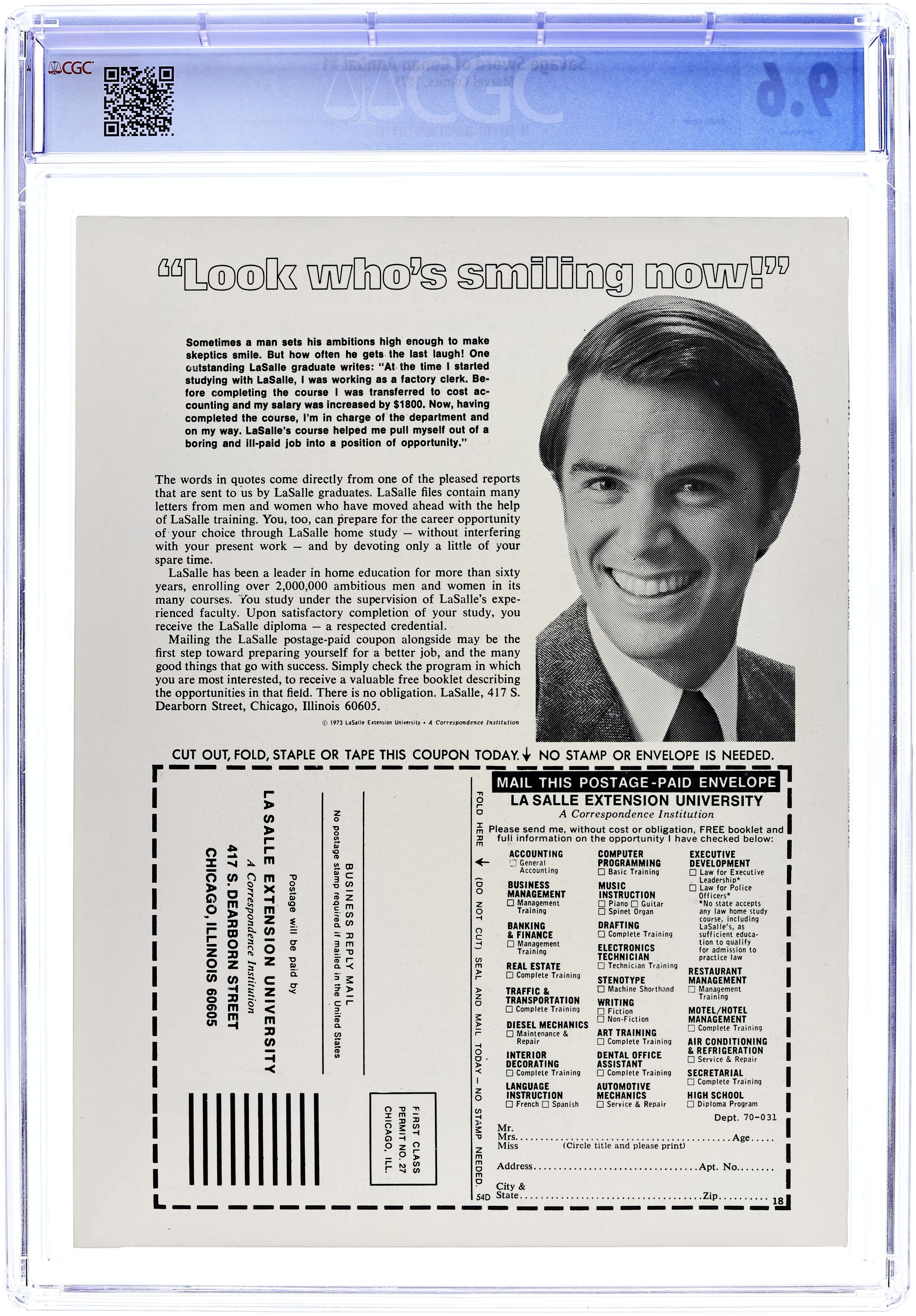 CGC is a comic book grading company. Comics that are submitted to CGC are graded by professional graders on a 10 point scale and then sealed inside a hard plastic cotainer to prevent tampering.