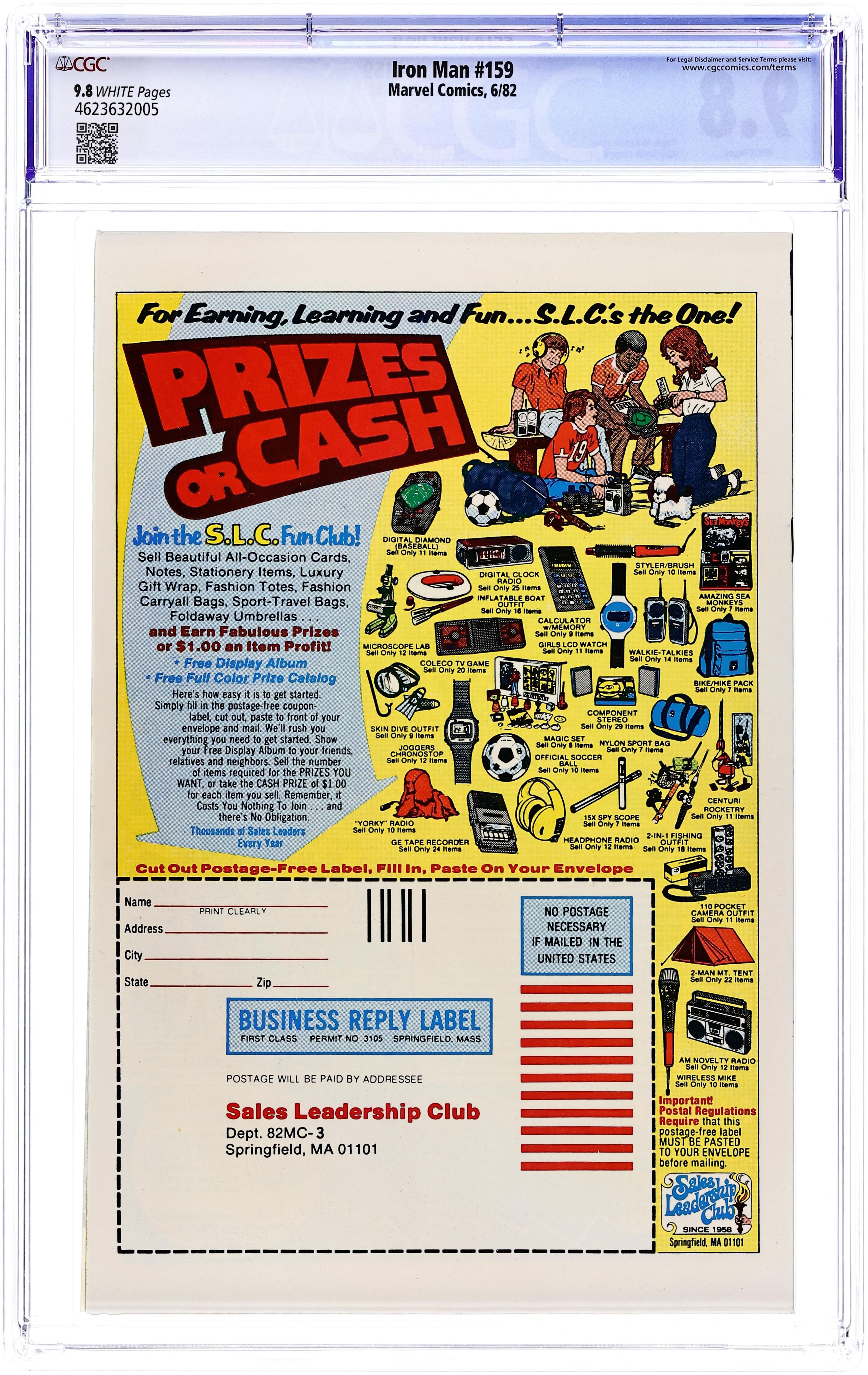 Direct Edition. "Escape from Heaven's Hand!" Part 1 of 2. Plot by David Michelinie and Bob Layton. Script by David Michelinie. Art by John Romita Jr. (breakdowns) and Bob Layton (finishes). Cover by Bob Layton (art) and Eliot Brown (photo background). In his new stealth armor, Iron Man slips into East Germany to rescue the woman he loves! The golden avenger successfully breaches the heavily-fortified complex where Bethany is being held...and then gets the shock of life! He must not only save Beth, but also her husband! What? Where did he come from? With his head spinning and heart breaking, Tony dons his traditional red and gold armor! Can Shell-Head fight off the East German security forces and still get everyone to safety in West Berlin? An excellent issue! First appearance of the stealth armor. Cameo appearances by Jim Rhodes and the Living Laser. 32 pages. Cover price $0.50.
