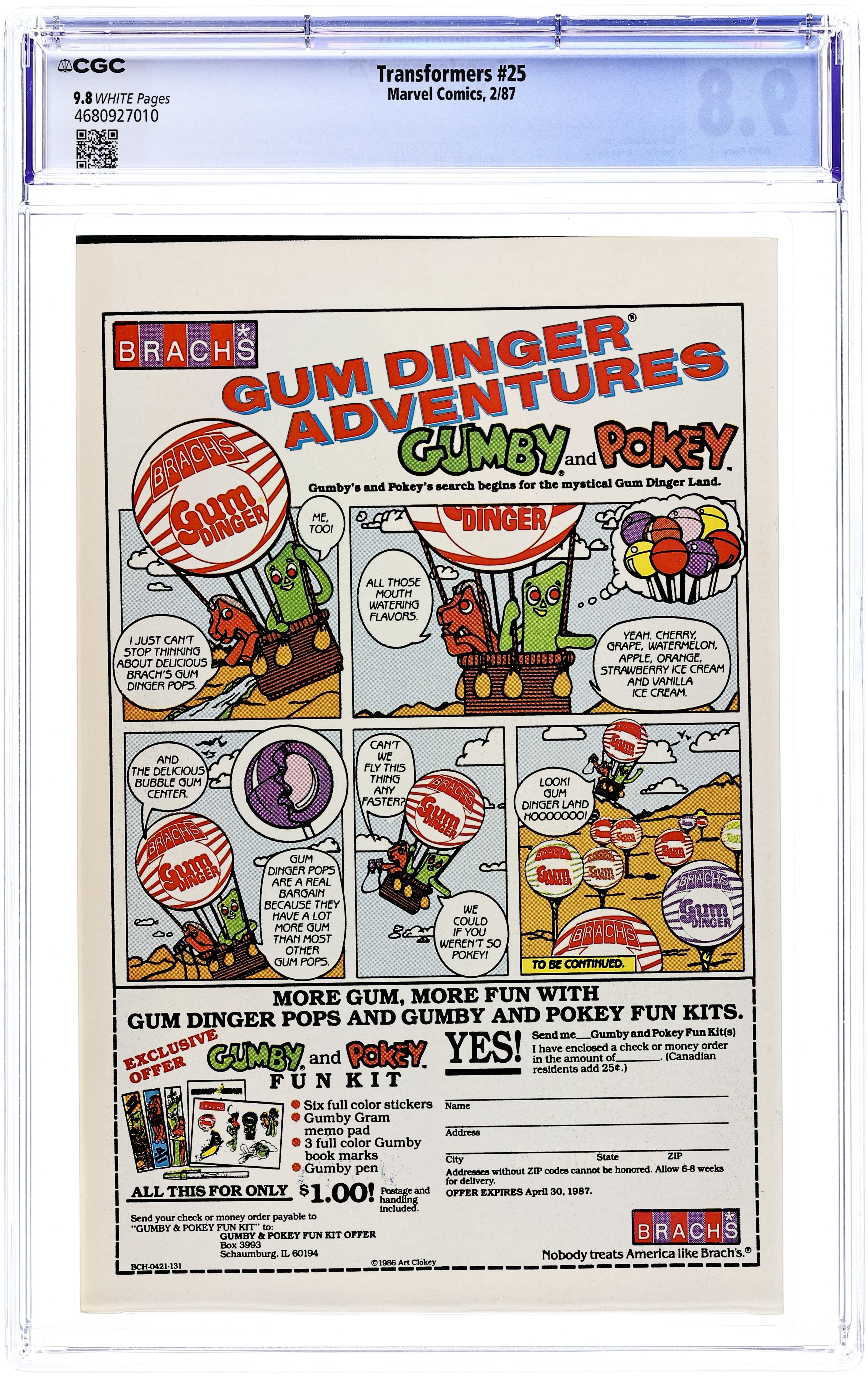 Tags: TransformersTransformers (1984 Marvel) 20D CGC 9.8