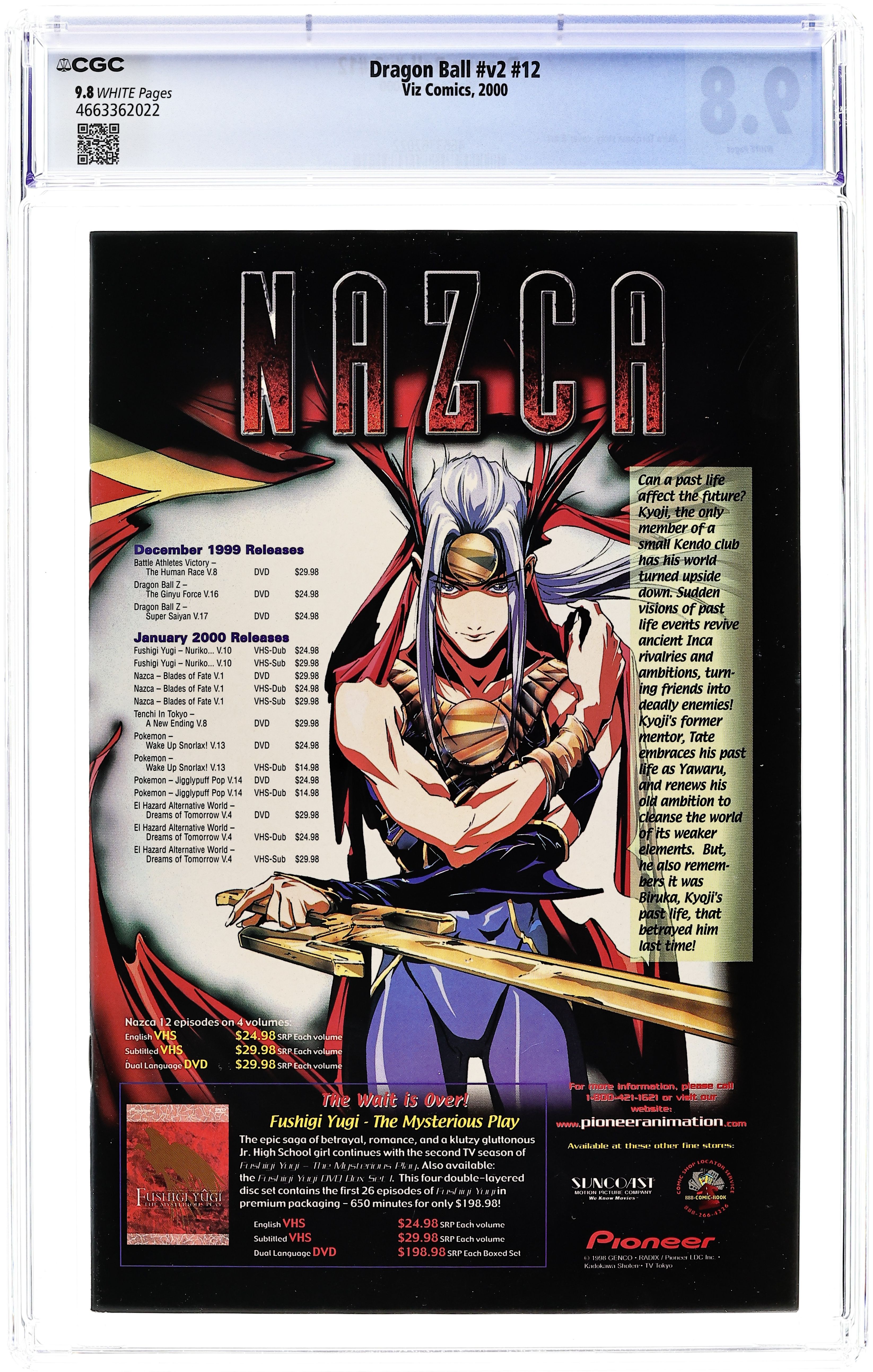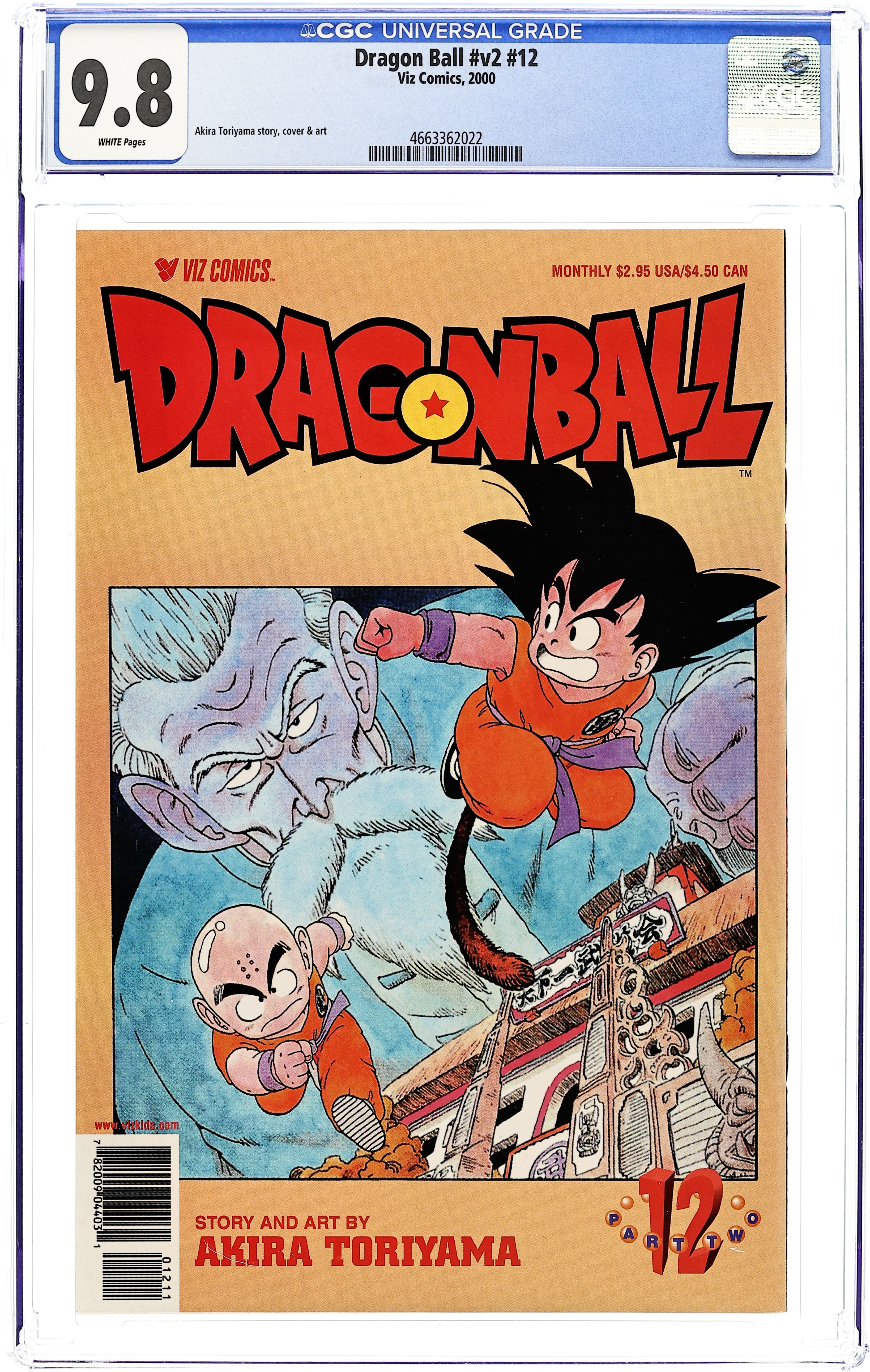 1st printing. Story and Art by Akira Toriyama. Fast forward to the future of the Dragon Ball world, as seen in America's most popular anime TV series! While Bulma converts Raditz's power-detector to work in English, Goku reaches the end of Snake Way and meets the most powerful martial artist in the afterlife. He's the one who'll train Goku to be really strong - under 10 times Earth's gravity! 32 pages, B&W. Cover price $2.95.
